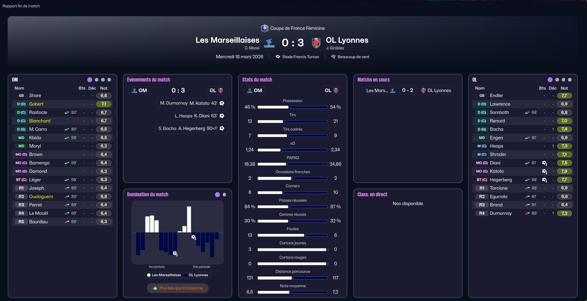 Puis viennent les matchs.