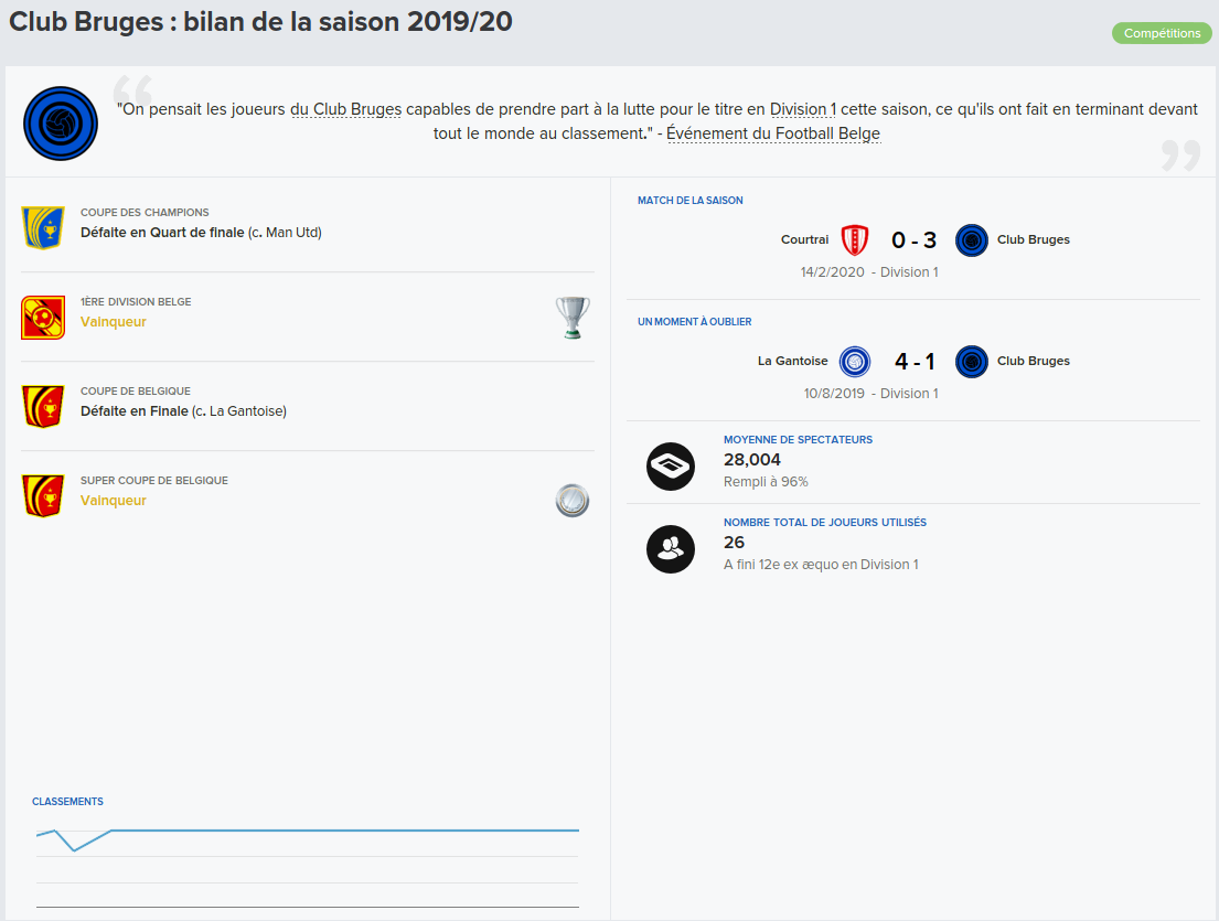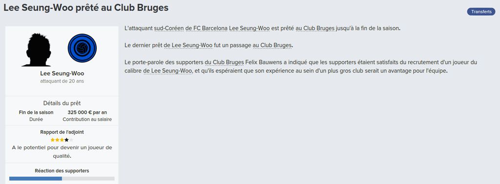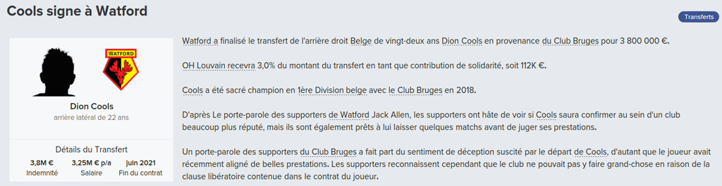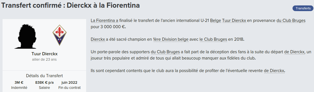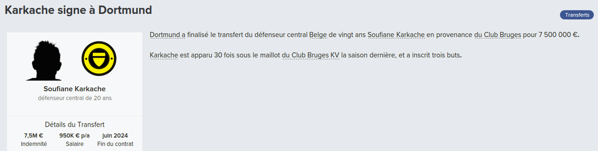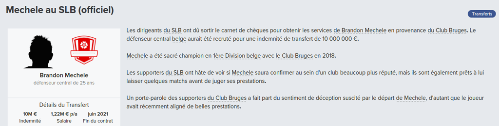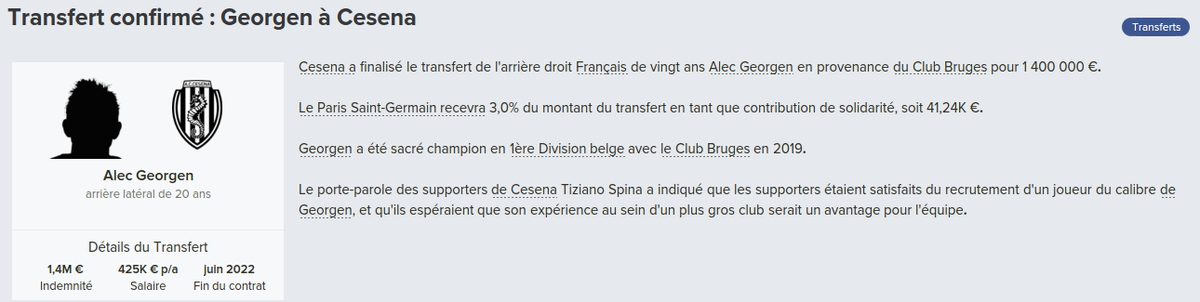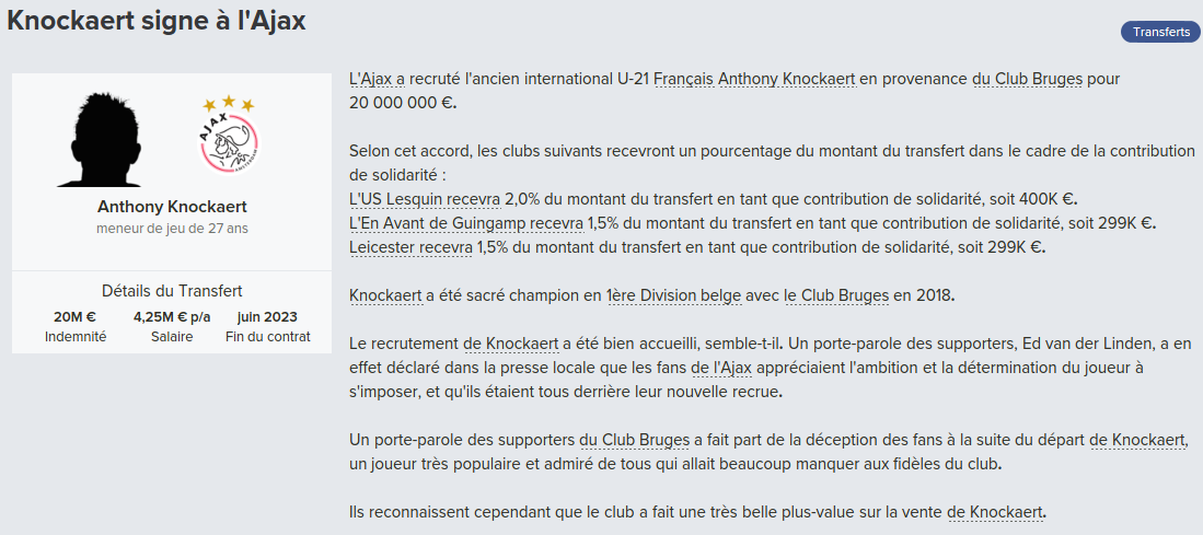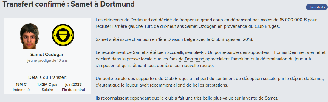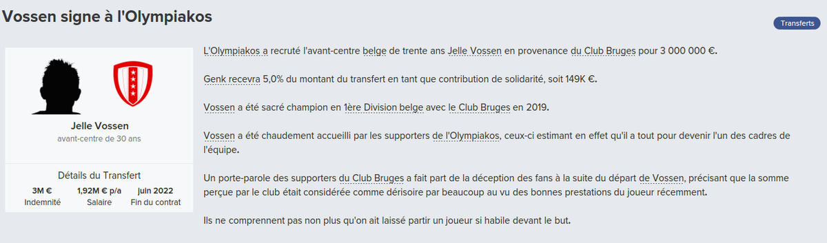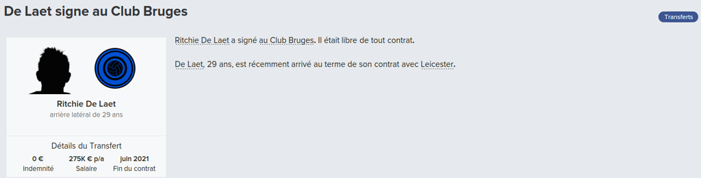Mot du Coach: 18,8M€ d’encaissé, 0€ de dépensé pour palier les départs de mes deux défenseur droits. Voilà une bonne gestion des finances, maintenant à voir si De Laet sera à la hauteur. Georgen lui a encore de la marge avant d’avoir exploité tout son potentiel.