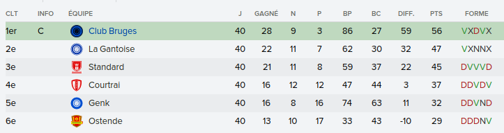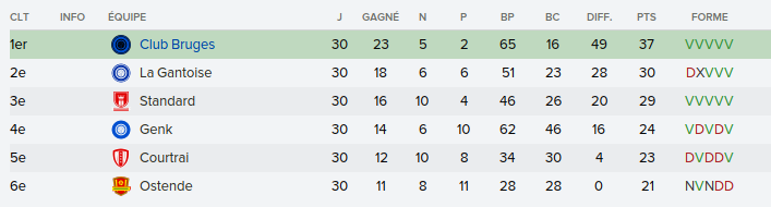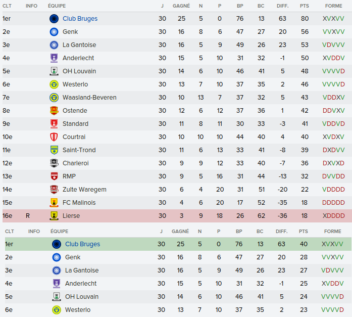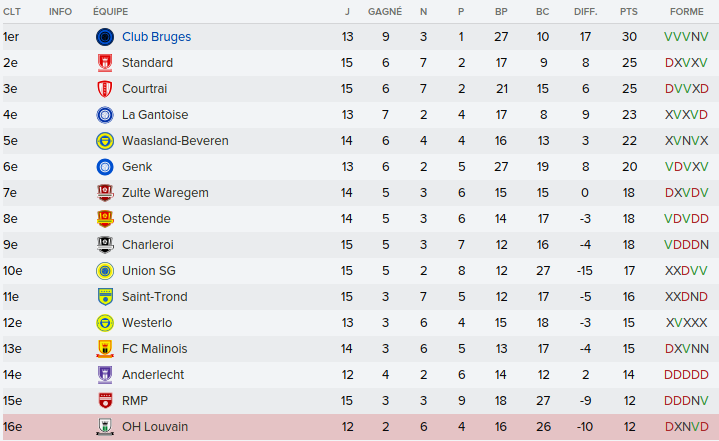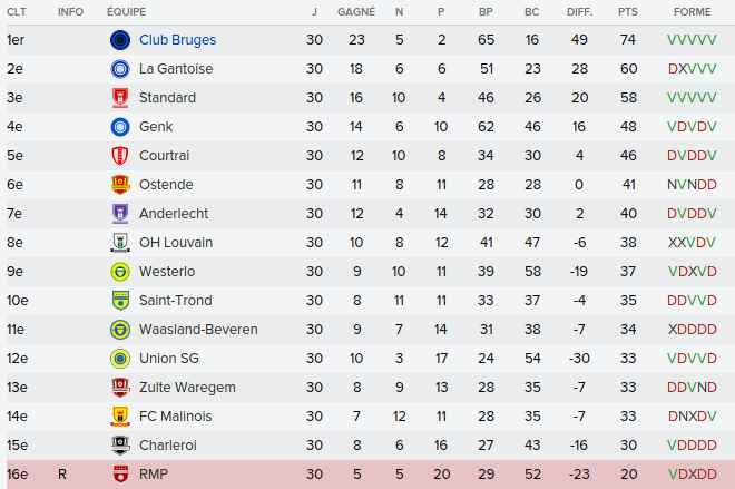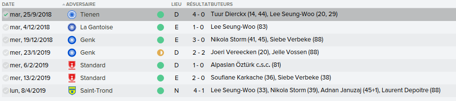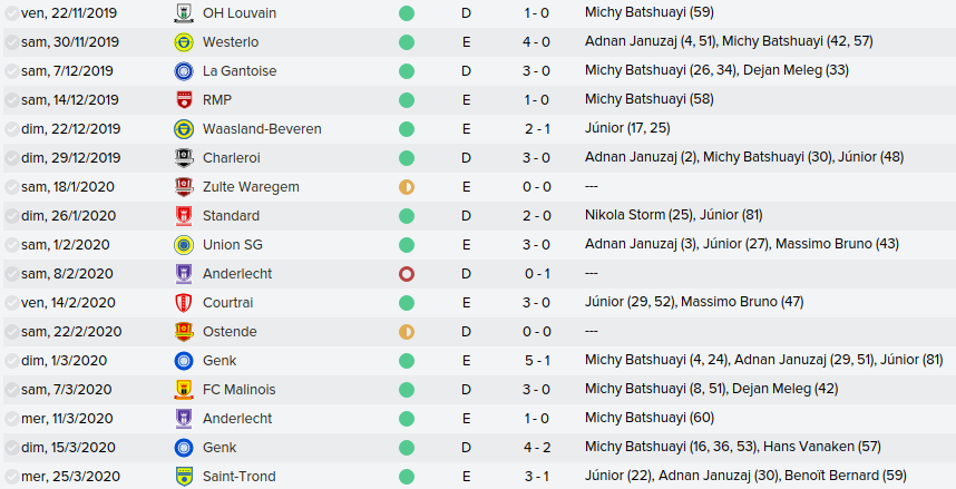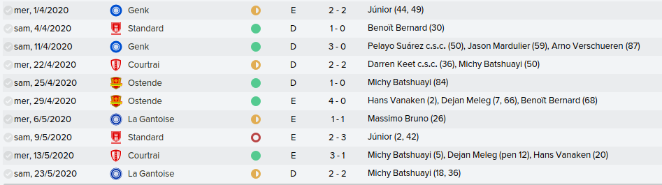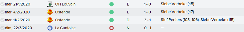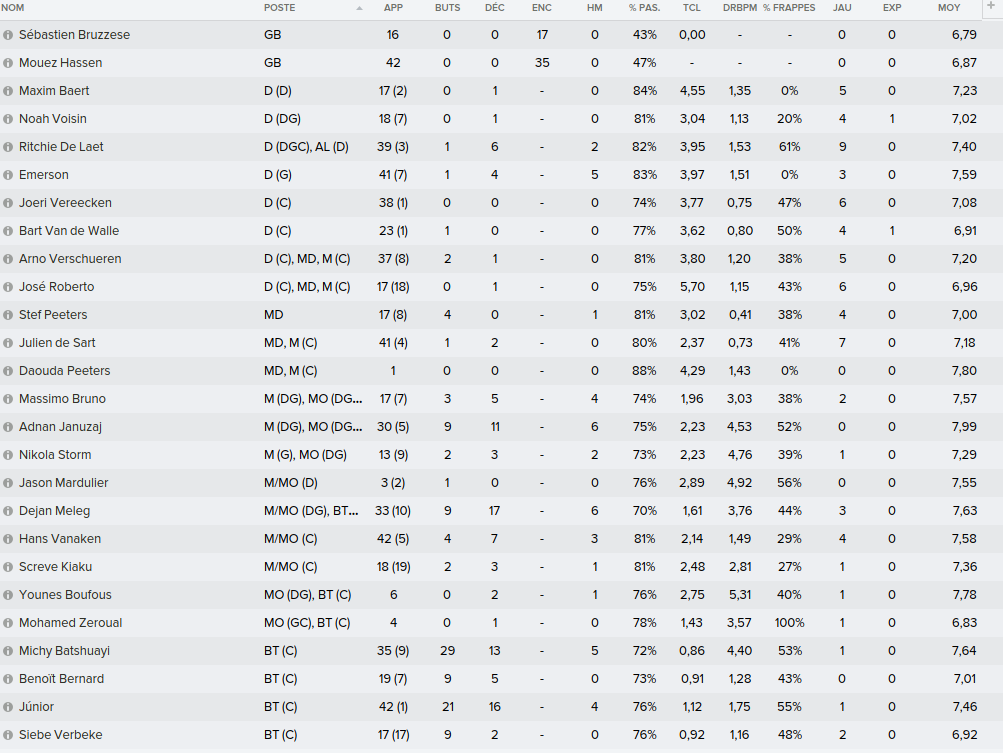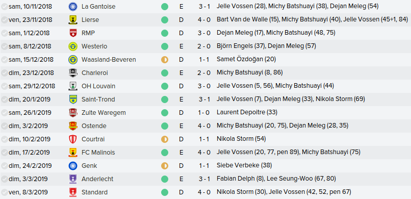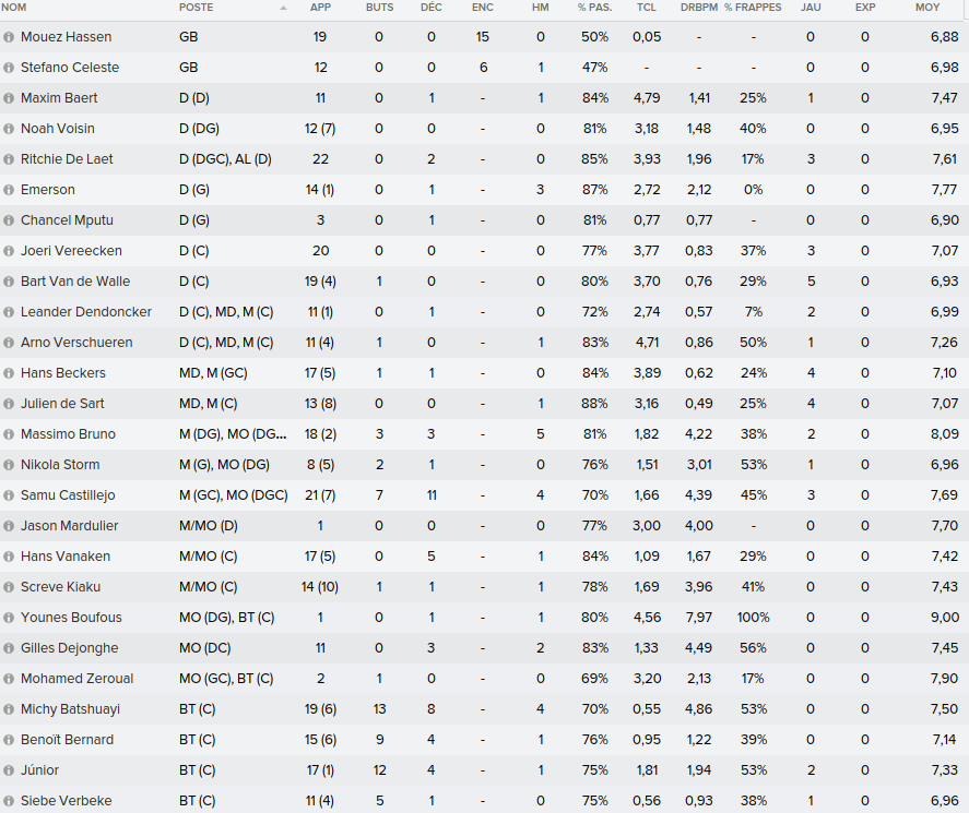 Mot du Coach: Comme la saison passée, on a envoyé beaucoup de jeune en prêt donc on se retrouve avec un groupe restreint ce qui n’a pas empêché nos joueurs de remporter la coupe de Belgique U21. Claudimir (Séville) et Bourdin (Reims) finiront leur 6 mois avant de partir dans leur club respectifs.