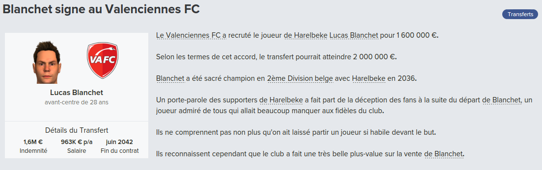 Mot du Coach: Millet fut impériale sur son flanc droit et Blanchet a finalement été tres important à la finition. j’attends un peu plus de mes deux MOC la saison prochaine.