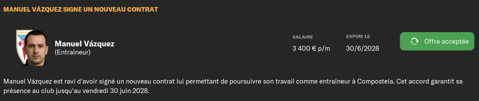 Nous avons rĂ©ussi Ă prolonger les contrats de deux joueurs pour maintenir la stabilitĂ© de lâĂ©quipe. Dani Varela continue dâimpressionner par ses progrĂšs constants, tandis quâElliot, bien que moins convaincant cette saison, se voit offrir une seconde chance pour retrouver sa forme.