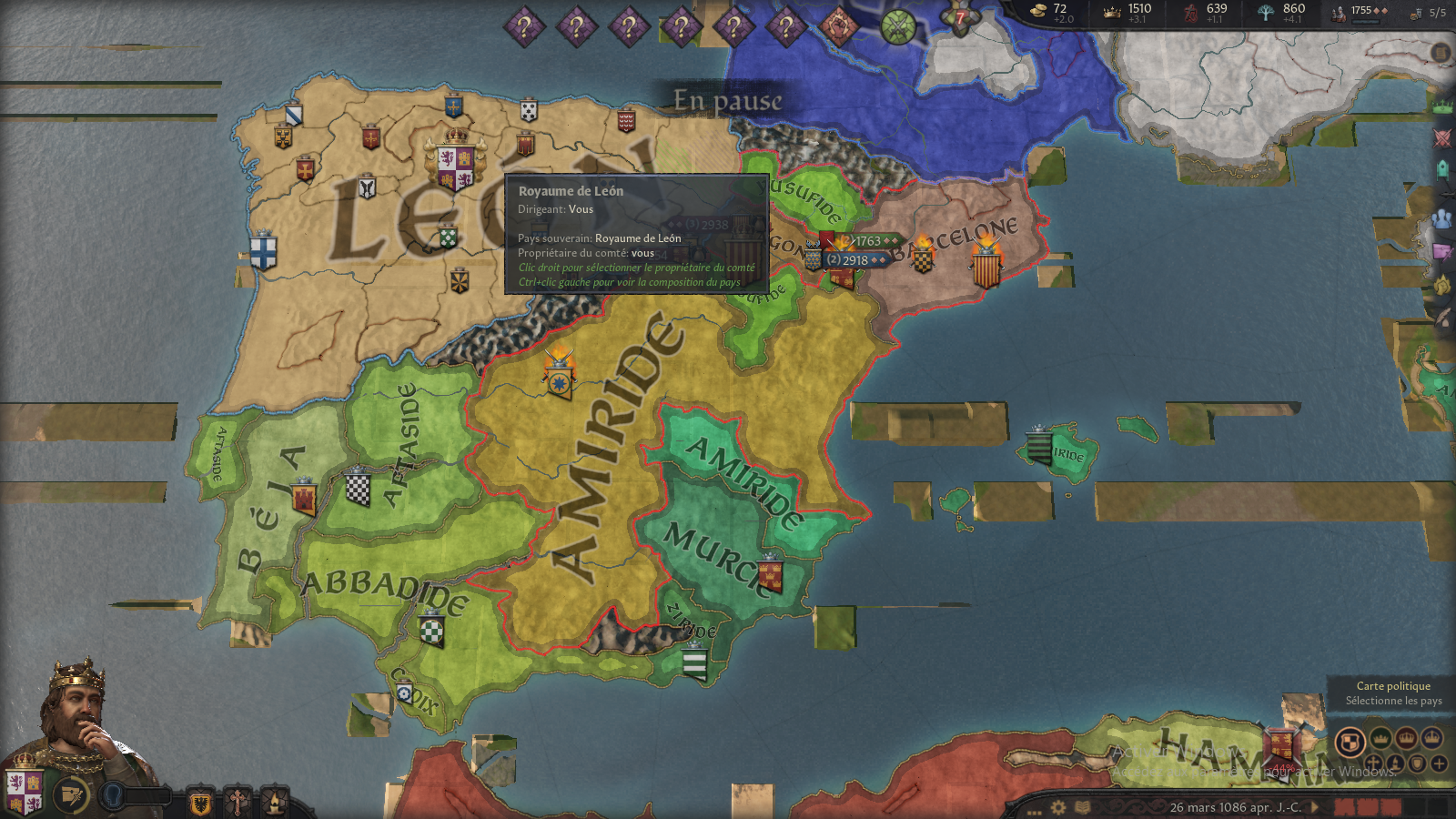 J’essaie de passer l’Espagne sous toutes les coutures afin de progresser, notamment avec Leon, car la gestion de la maitre-espionne Urraca est assez drôle. Un coup, elle me tue, un coup, elle m’aime.