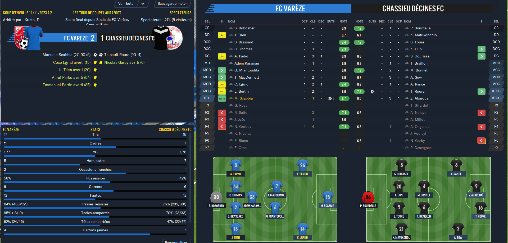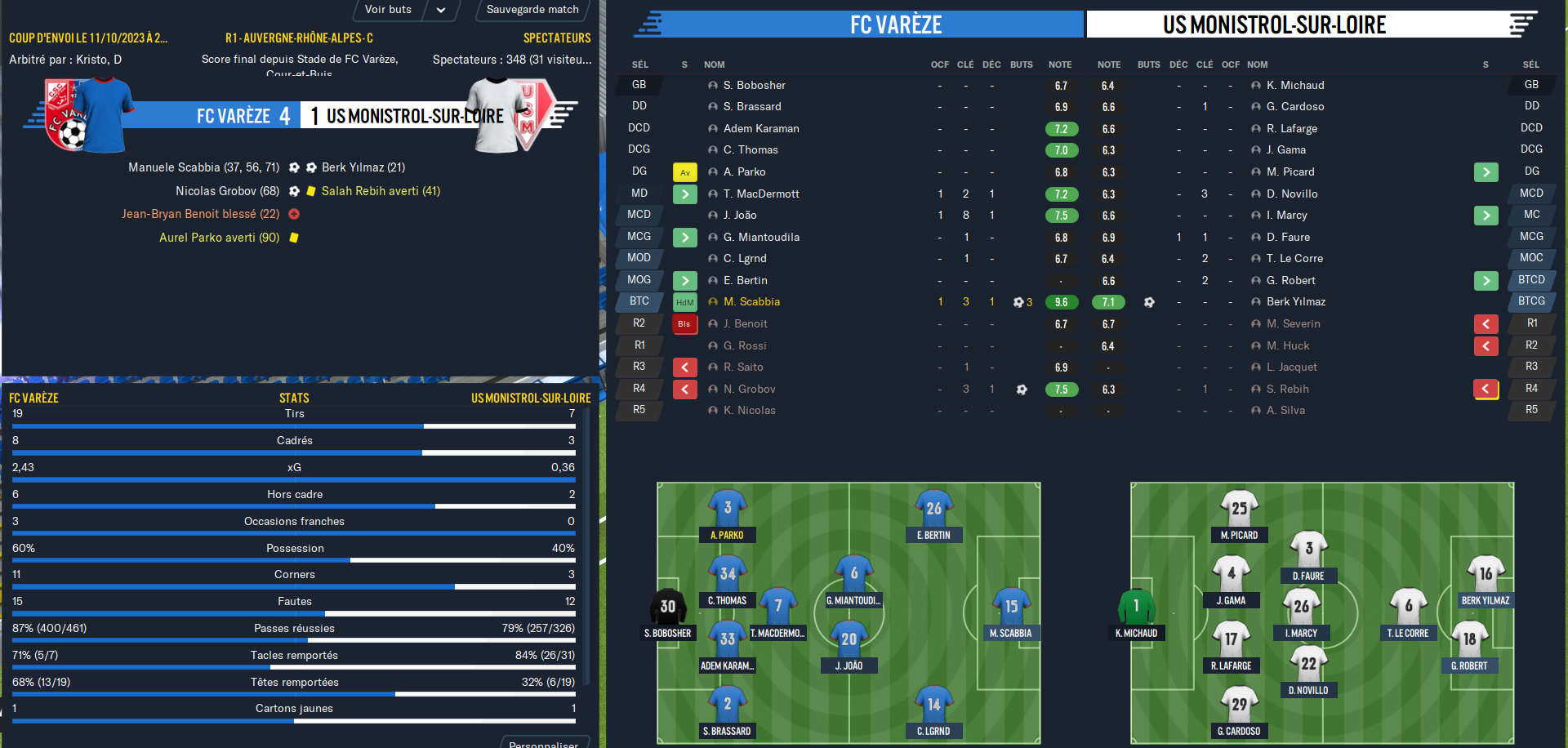 je marque un petit but et sauf certains match, Saito a de bonnes notes