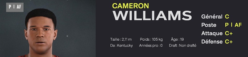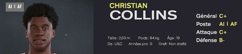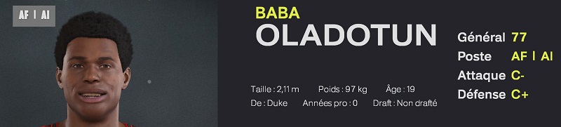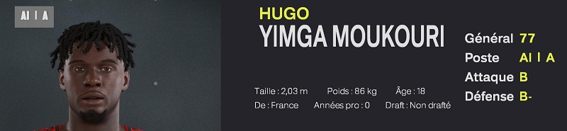 Un extĂ©rieur Français de 2m03, dotĂ© de qualitĂ©s physiques hors normes. Il est un trĂšs bon dĂ©fenseur pour son Ăąge, et peut ĂȘtre utilisĂ© immĂ©diatement en attaque. -