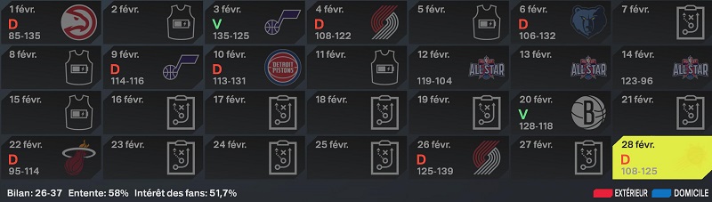 Si notre saison commence Ă manquer cruellement de relief, et que je ne suis pas parvenu Ă arranger le coup lors de la trade deadline, je dois tout de mĂȘme prĂ©parer lâavenir. Et contrairement Ă la saison passĂ©e, nous aurons un rĂŽle Ă jouer pour la prochaine draft, grĂące aux Bucks.