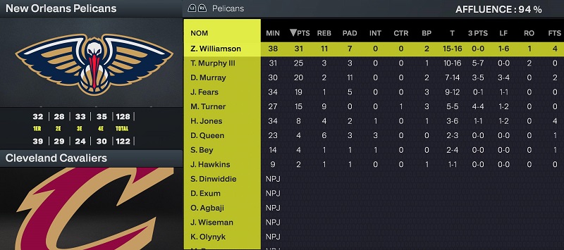 Une victoire, un bon Zion et pas blessé! Tout est bon à prendre!