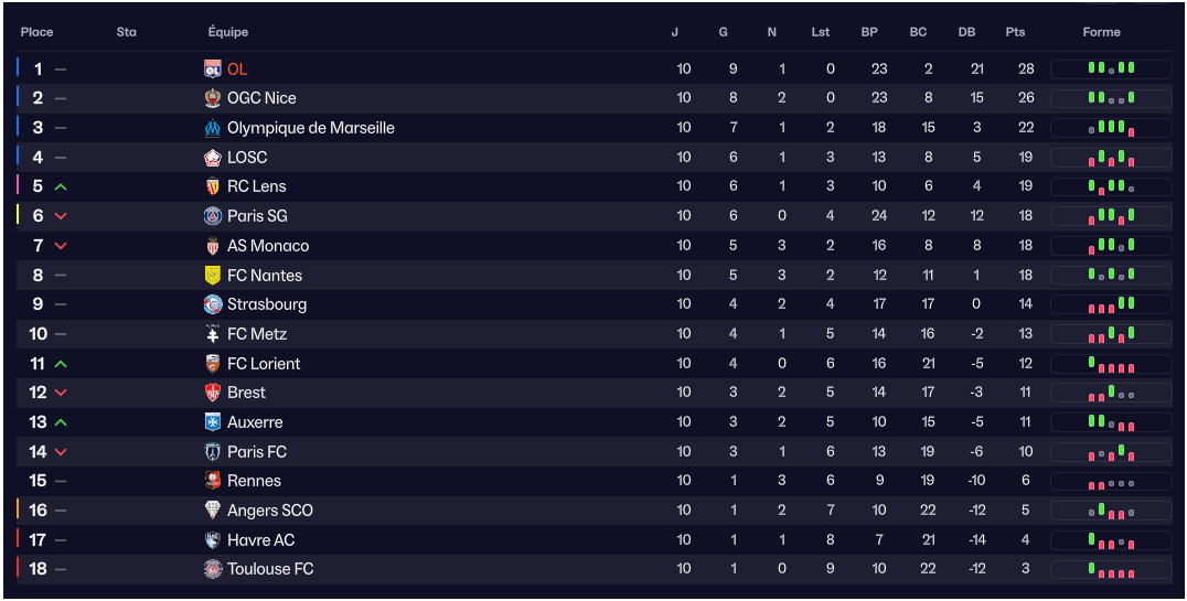 On mène la locomotive devant Nice, Lille et 3 énormes ogres du Championnat.