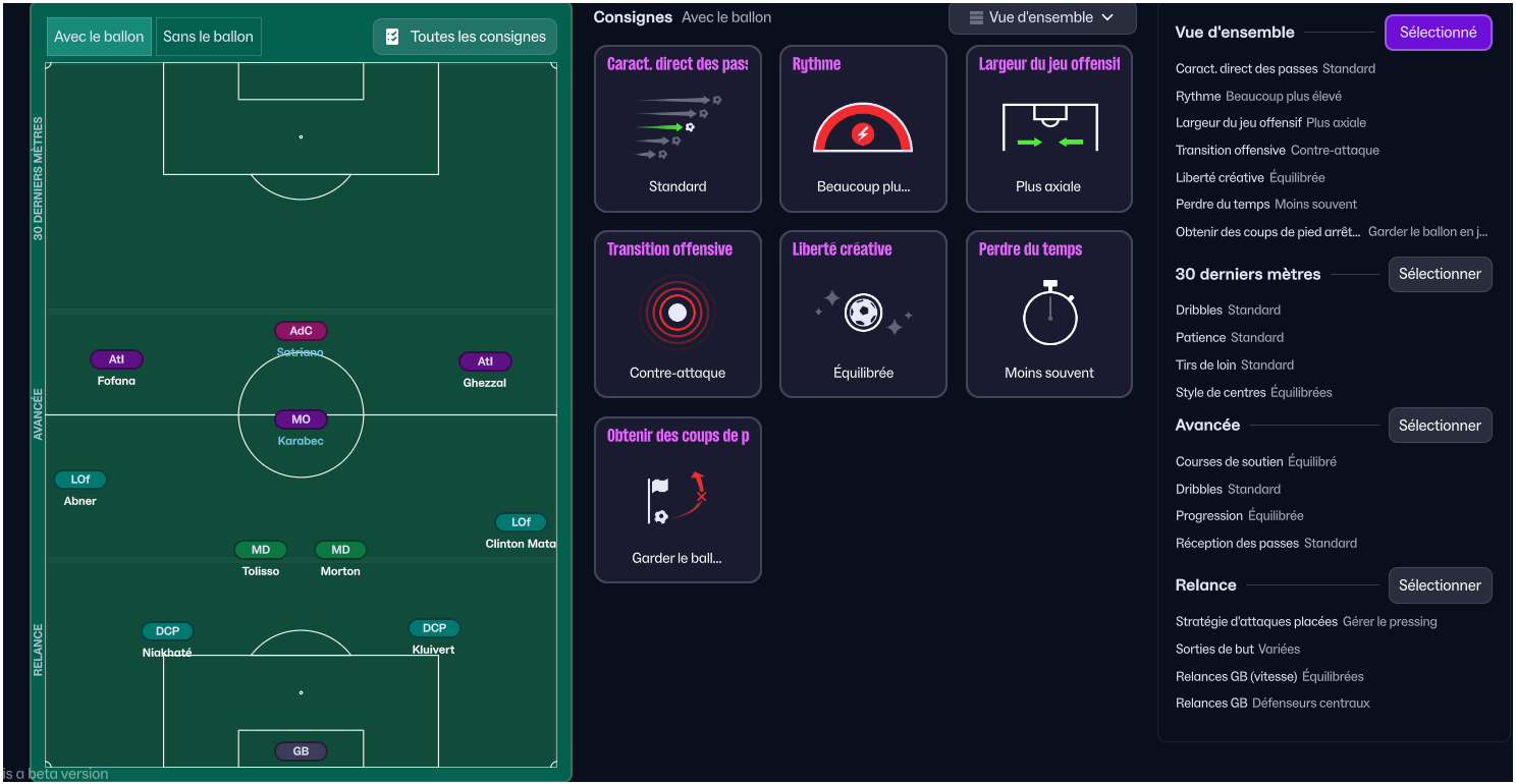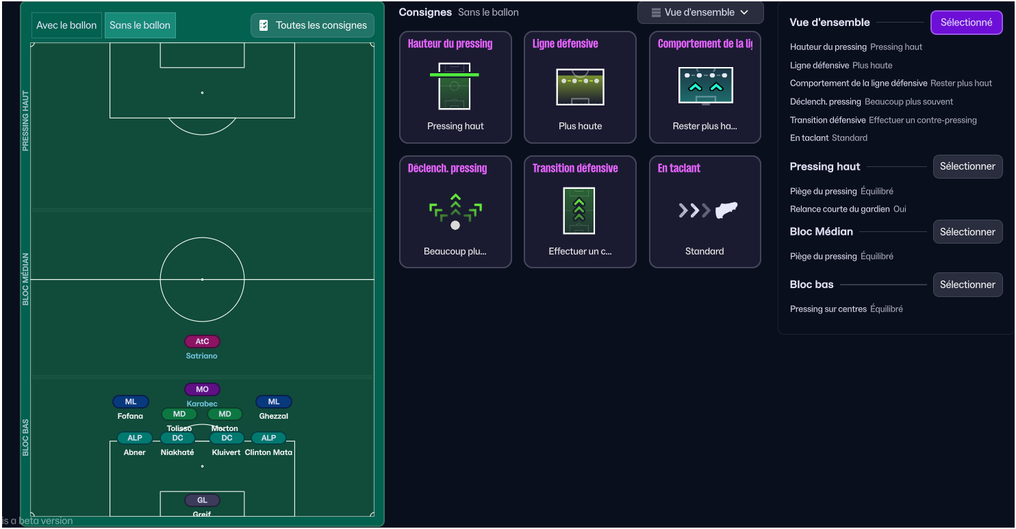 Voici donc le schéma tactique qui sera appliqué pour cette 1ère saison. Tactique qui pourra changer en cours de saison selon les blessures et si la sauce ne prend pas :
