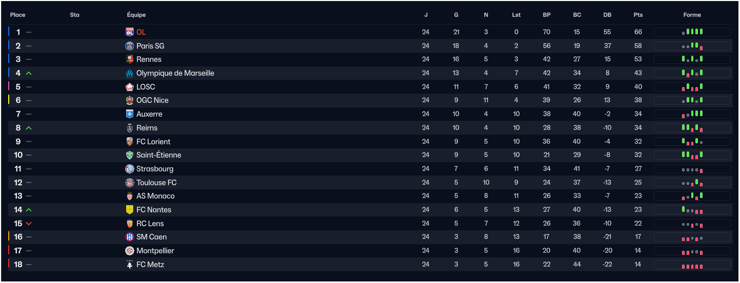 Match de mois de Février : Metz (A), Lens (H), Lorient (A), Paris (H).