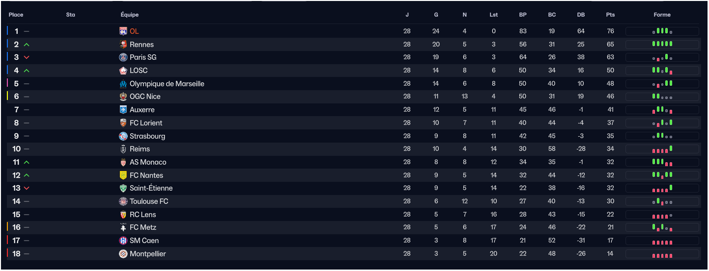 LâĂ©cart se creuse et se porte dĂ©sormais Ă 11 points alors quâil reste 6 matchs. Le matelas semble plus que consĂ©quent.