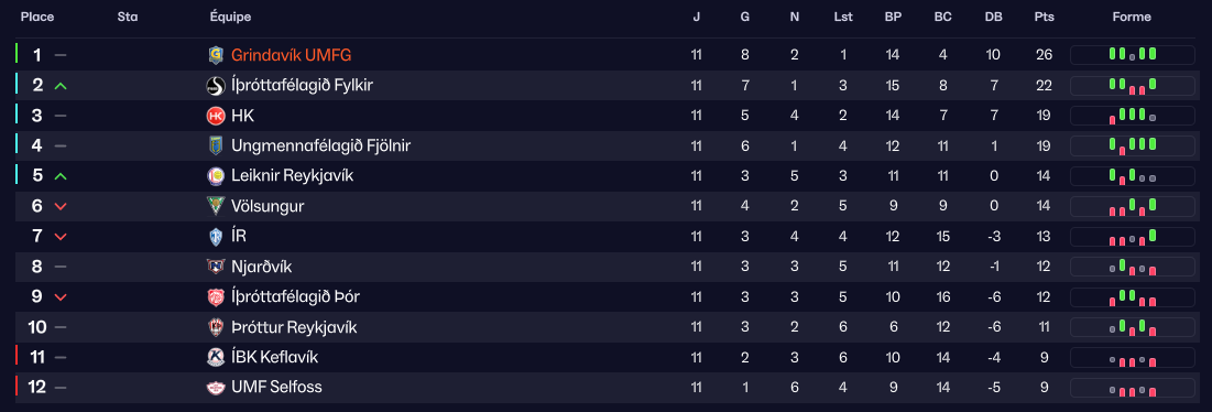 Bon venons en au faits : sur les 11 premiers matchs de championnat (entrecoupés de la coupe d’Islande), Grindavik c’est 8 victoires, 2 nuls, 1 défaite. 14 buts marqués (2eme attaque ex aquo avec HK - 1er Fylkir) et seulement 4 buts encaissés (meilleure défense).