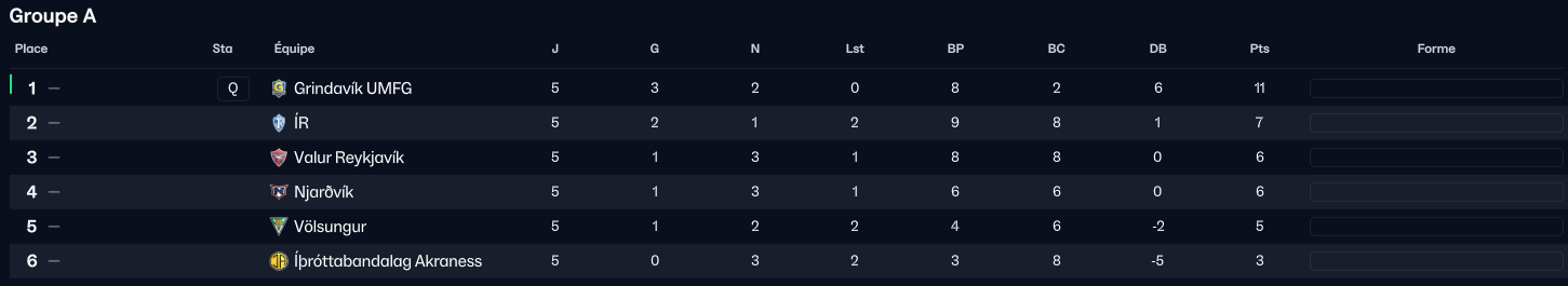 Pour cette Deildabikkar, ce fut un peu plus compliquĂ© que la saison derniere avec deux matchs nuls et 3 victoires, malgrĂ© un groupe plus abordable que les annĂ©es prĂ©cĂ©dentes. Ce qui suffit tout de mĂȘme pour finir premier de la poule je vous rassure.