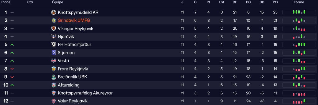 Grindavik surprend sur ce début de saison en accrochant la deuxiÚme place. Le KR a déjà une petite avance confortable sur le reste du top 6.
