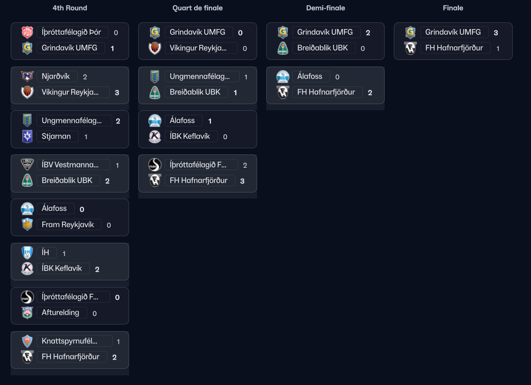 | Grindavik UMFG | (p) 0-0 | Vikingur Reykjavik | - |
