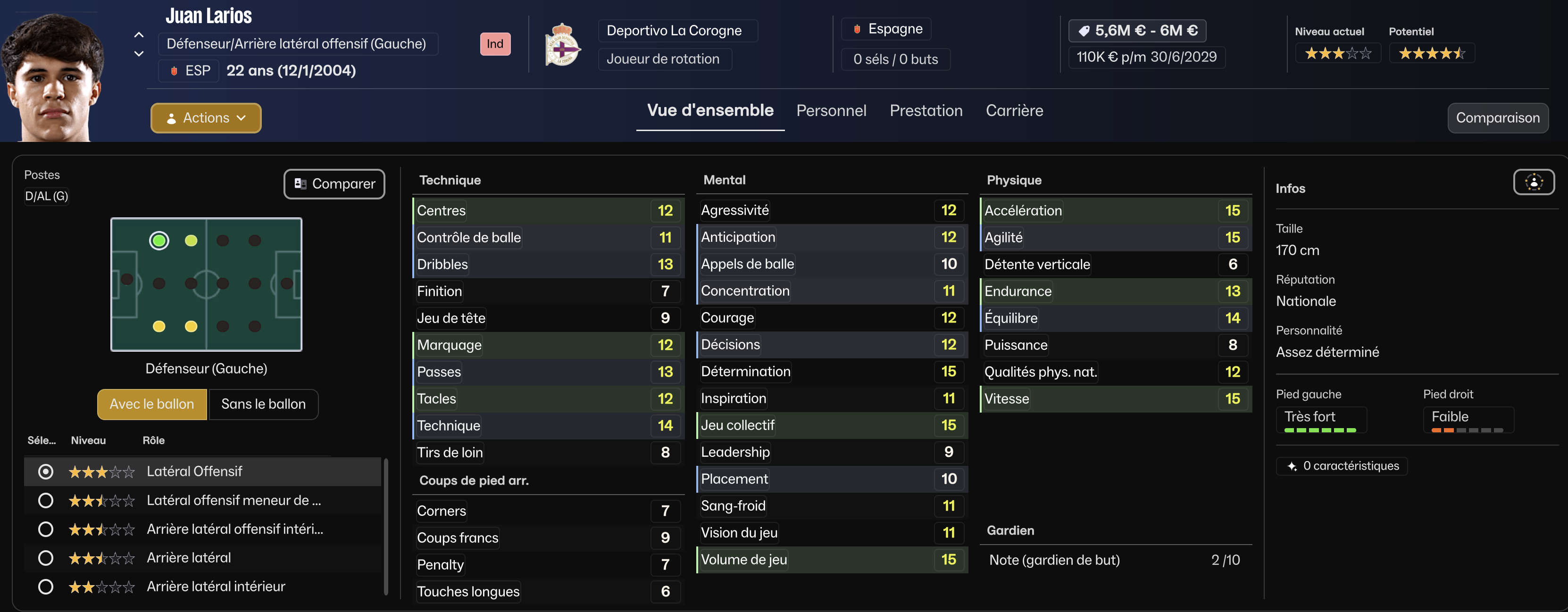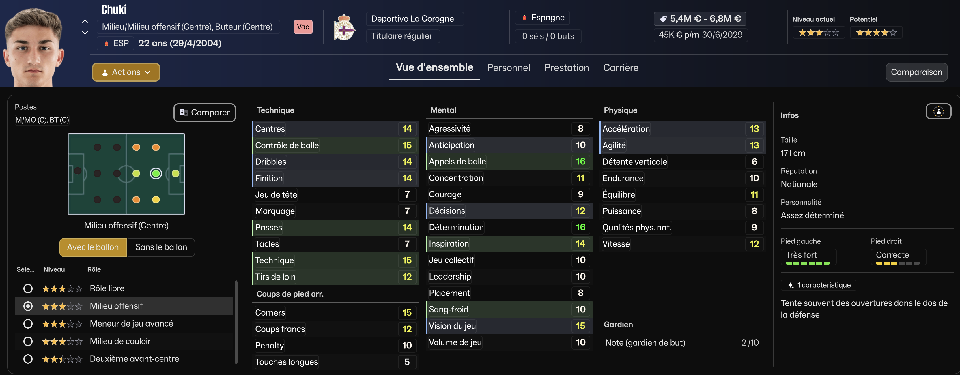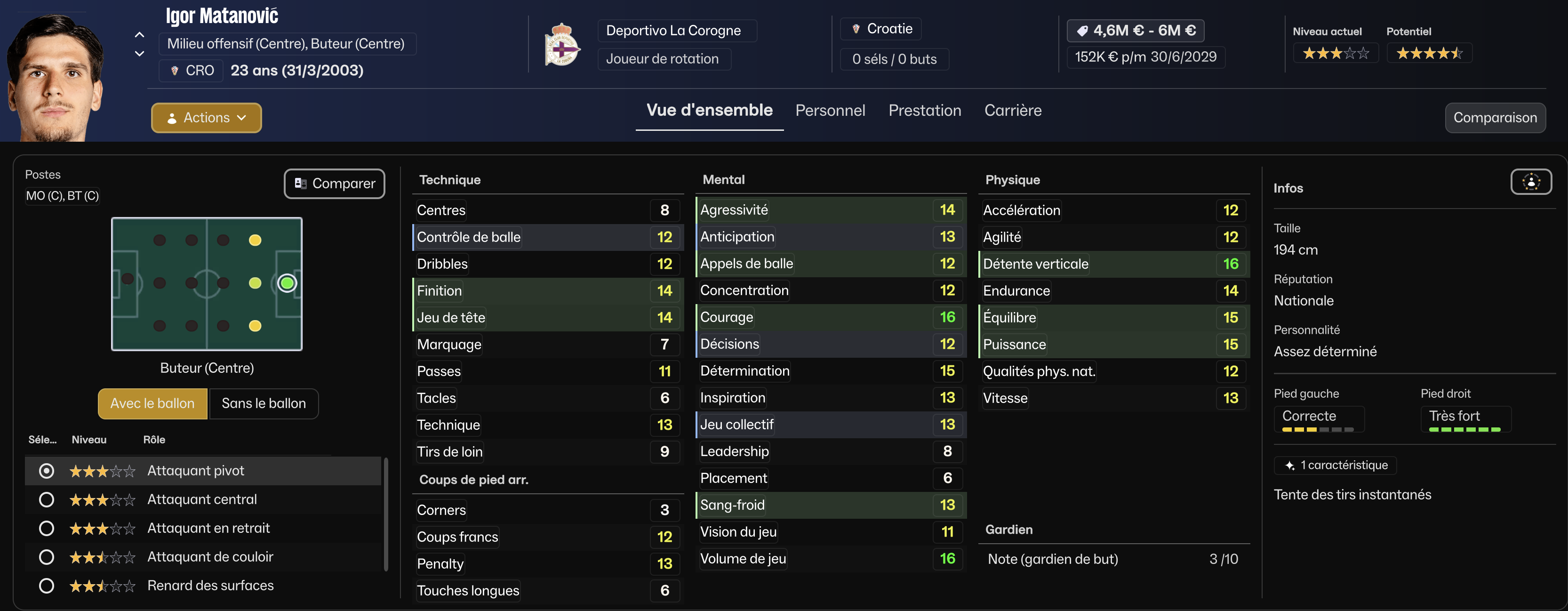 Un avant-centre puissant (1m94), excellent point dâappui, capable de fixer et de libĂ©rer les couloirs pour Yeremay et Mella.