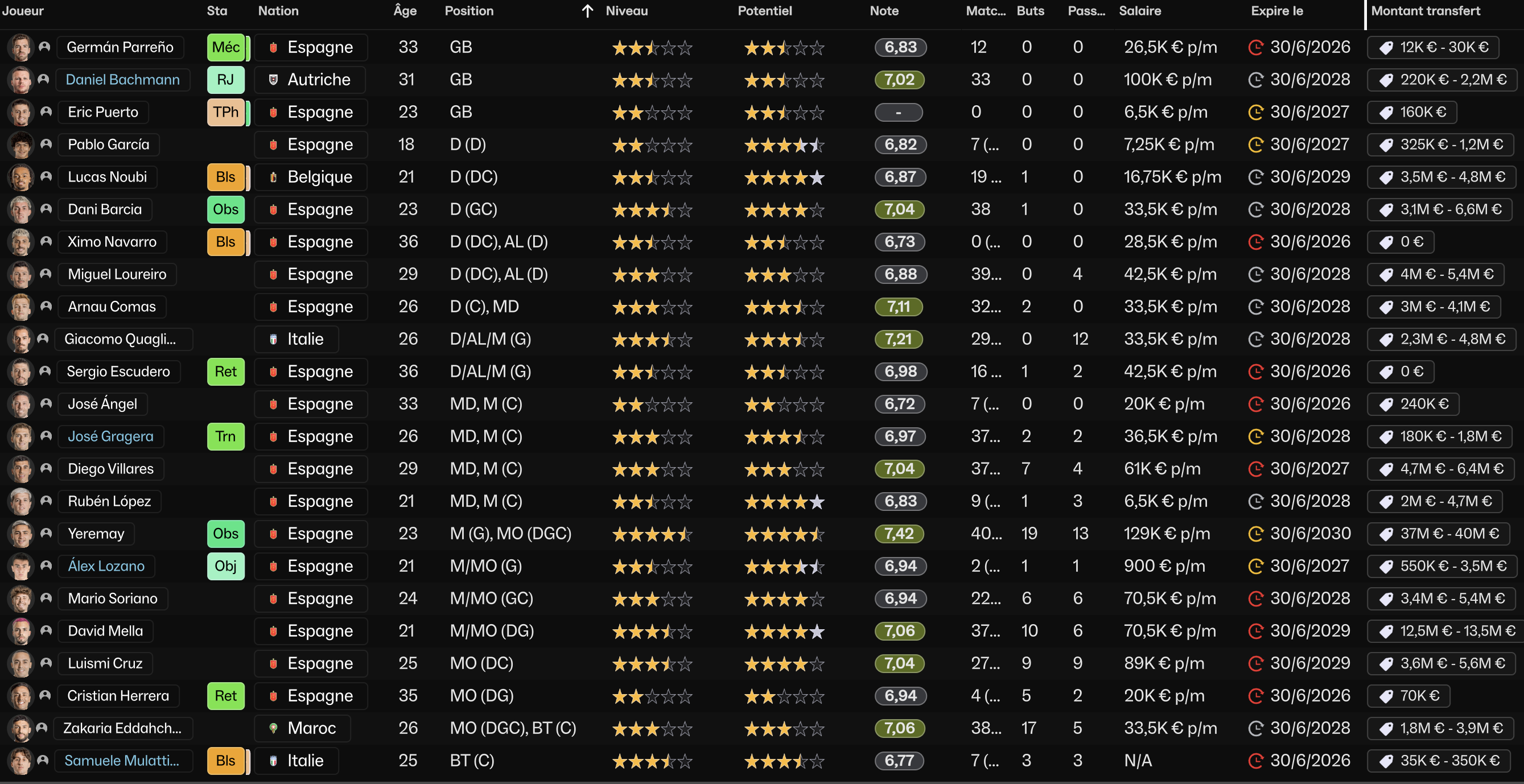 @Tora69 : Tâas bien intuitĂ©, pas mal de fin de contrats pour mes vieux, jâai une bonne base que je veux conserver pour voir ce que ça donne en Liga, mais il va falloir renforcer et doubler les postes avec des moyens trĂšs limitĂ©s.
