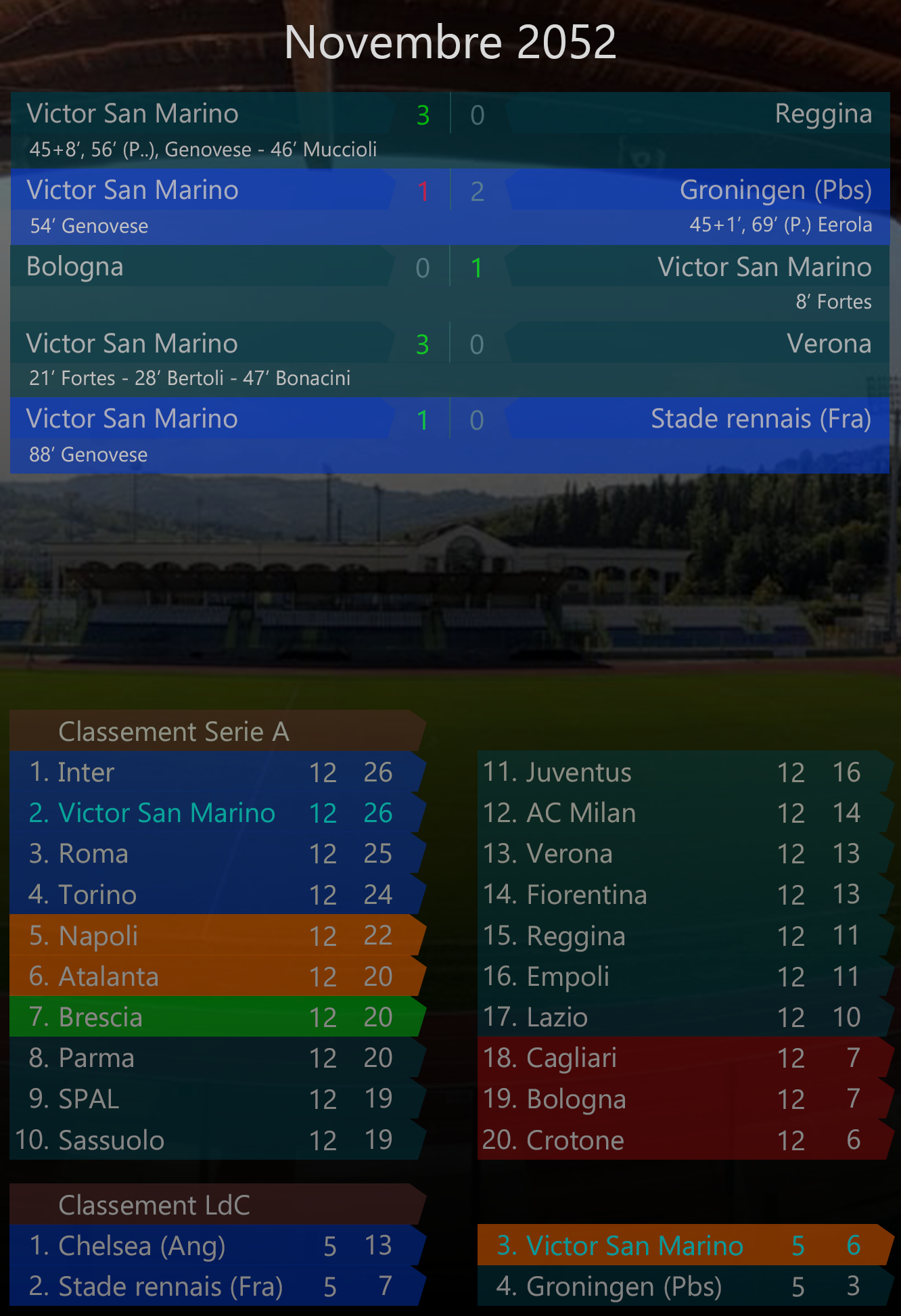 Incroyable 12/15 en championnat ! De plus, avec la perte de vitesse de lâInter, nous sommes seuls en tĂȘte et les milanais sont mĂȘme dĂ©passĂ©s par la Roma.