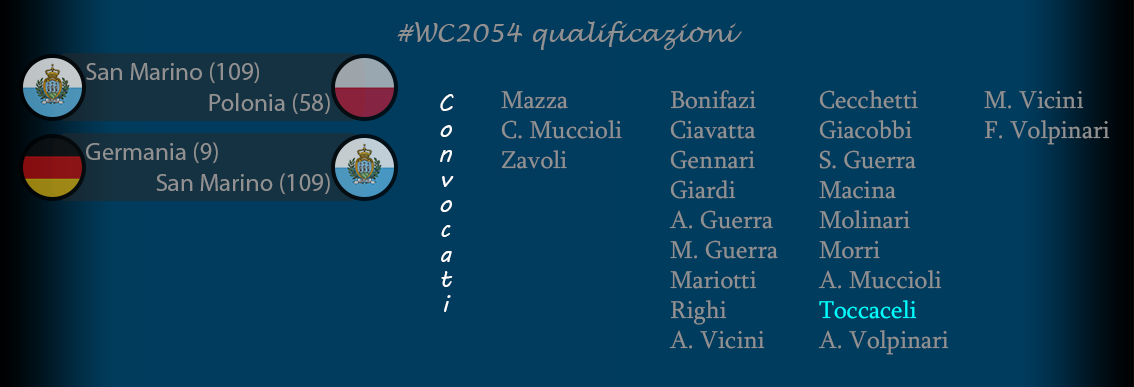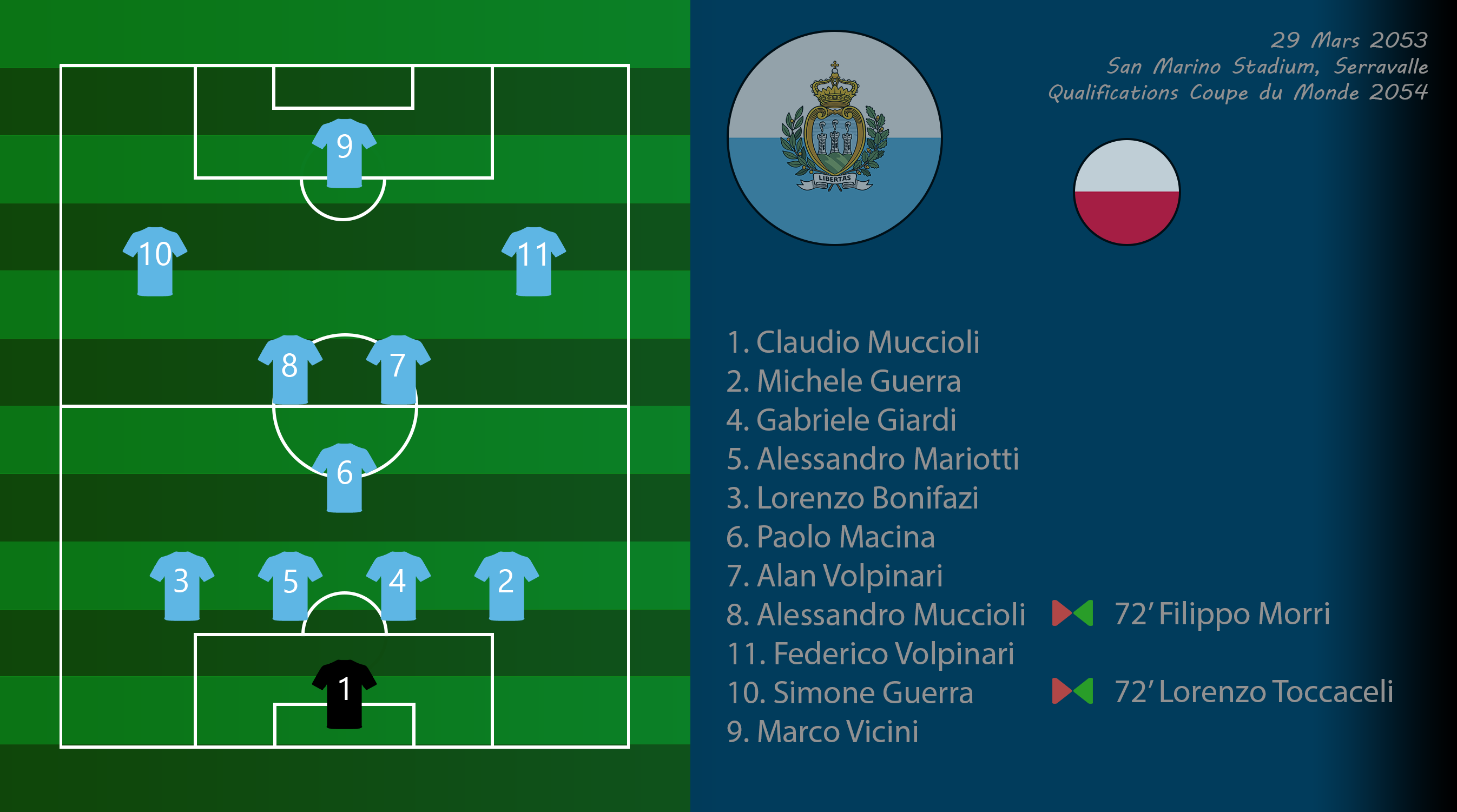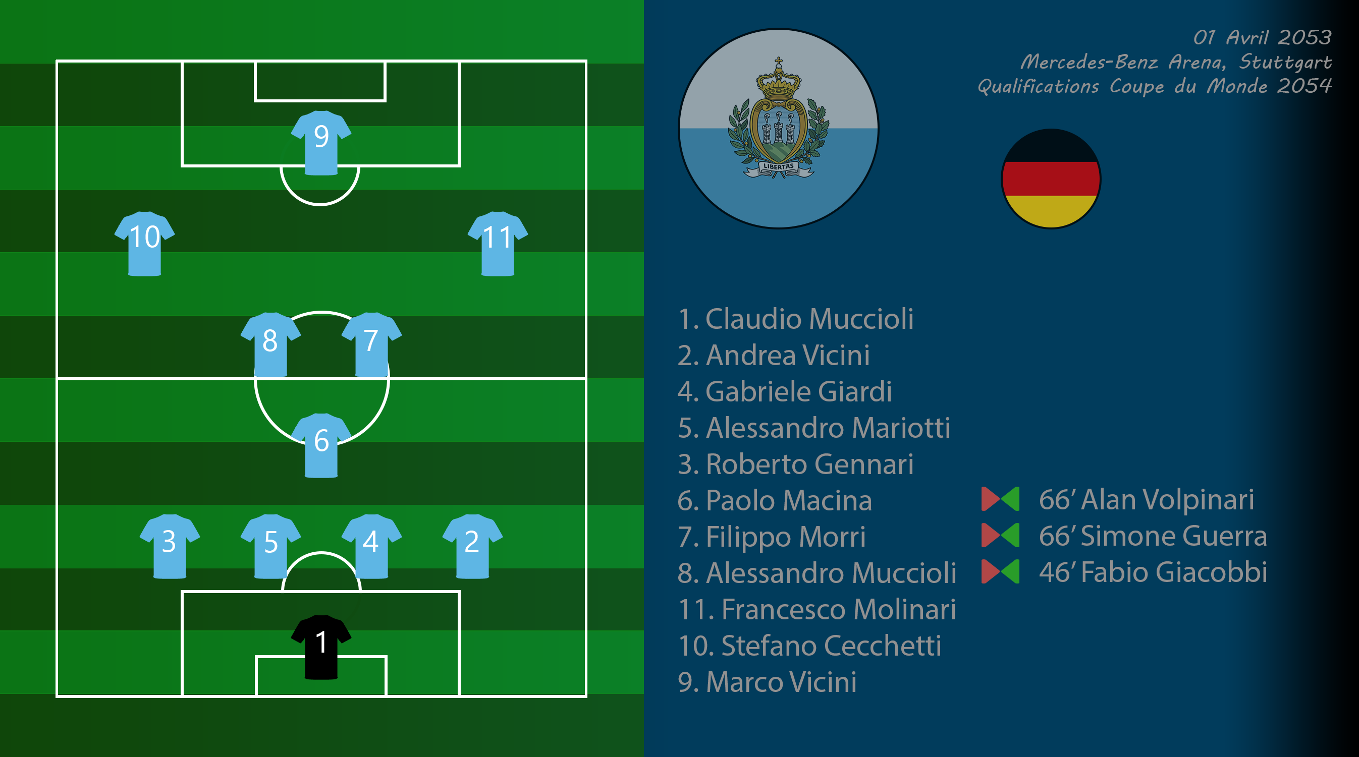Début des qualifications de la Coupe du Monde 2054, avec la réception de la Pologne et le déplacement en Allemagne.