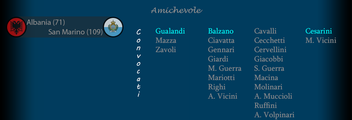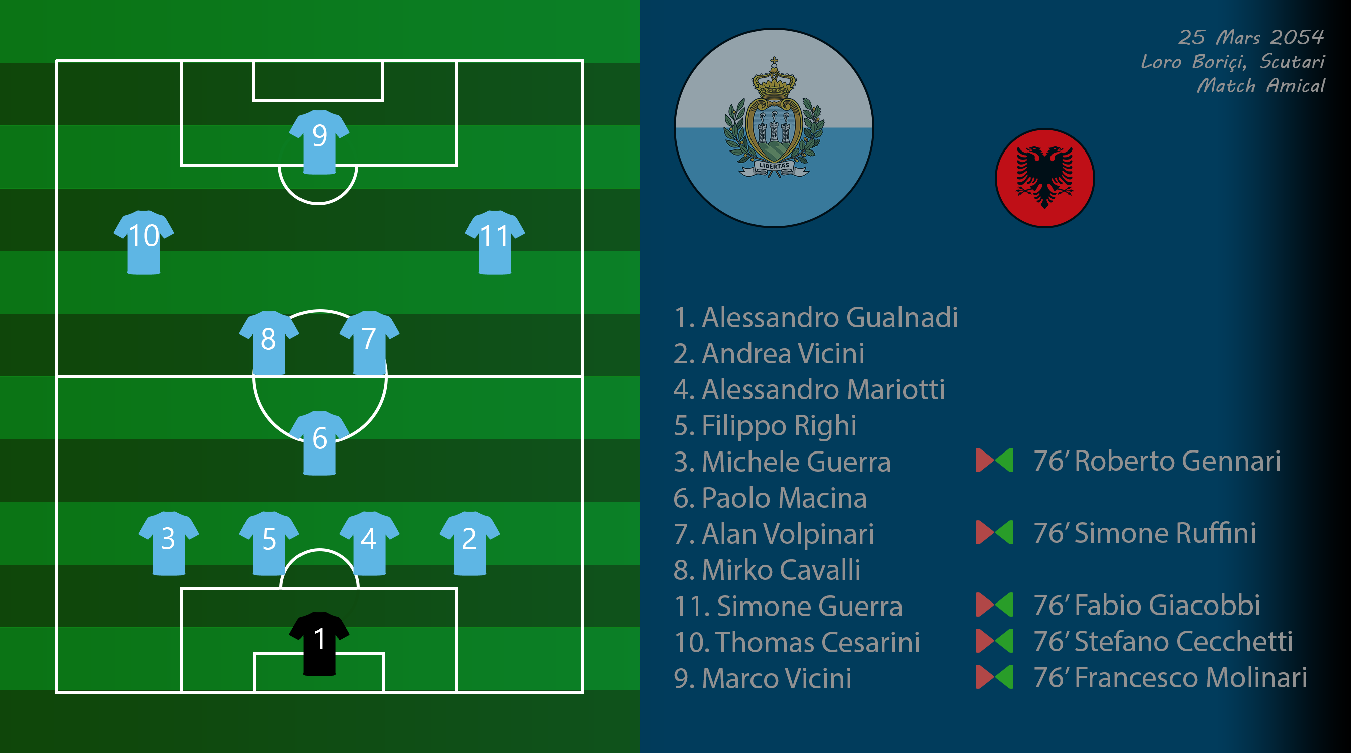 AssurĂ©ment la tuile incontestable est lâabsence de Claudio Muccioli, notre gardien titulaire. Il est remplacĂ© par Alessandro Gualandi. Ce dernier devait ĂȘtre repris chez les espoirs, mais puisquâils disputent Ă©galement des rencontres amicales, je me permets de le reprendre et le ferai disputer la rencontre.