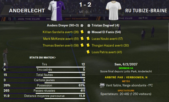 Toujours rassurant les matchs à Anderlecht. Parfait pour se relancer.