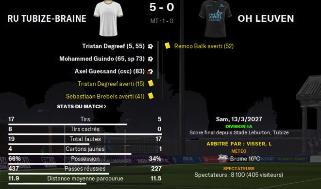 Dernier match du mois et enfin une victoire grâce surtout à notre nouvelle recrue Degreef qui met un joli doublé en fin de match.