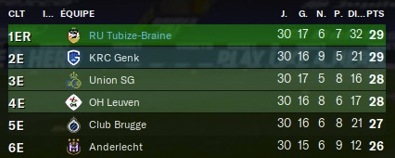 Malgré notre irrégularité de février, on commence en tête, mais les 6 équipes se tiennent en 3 points. Malheur aux vaincus.