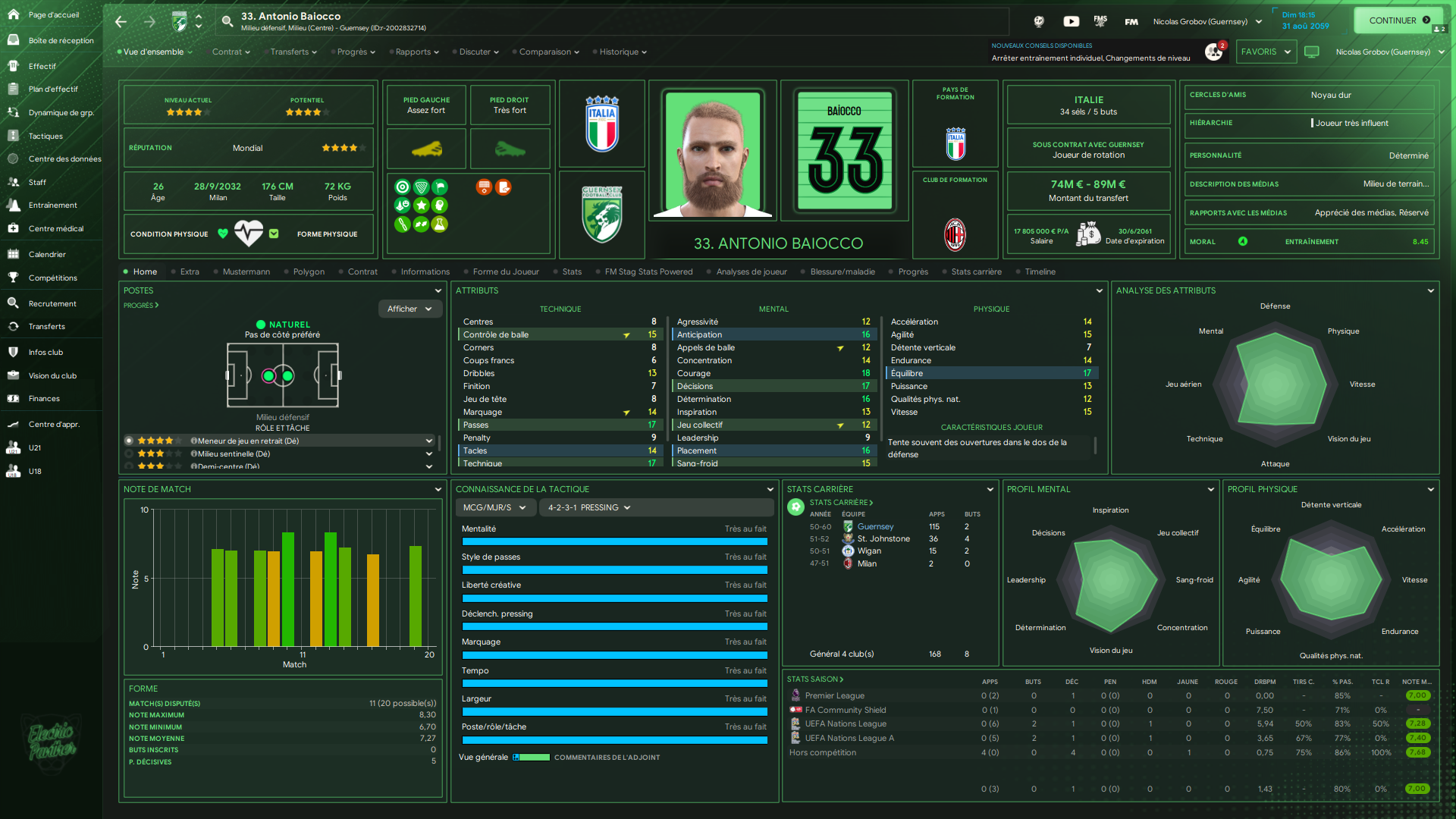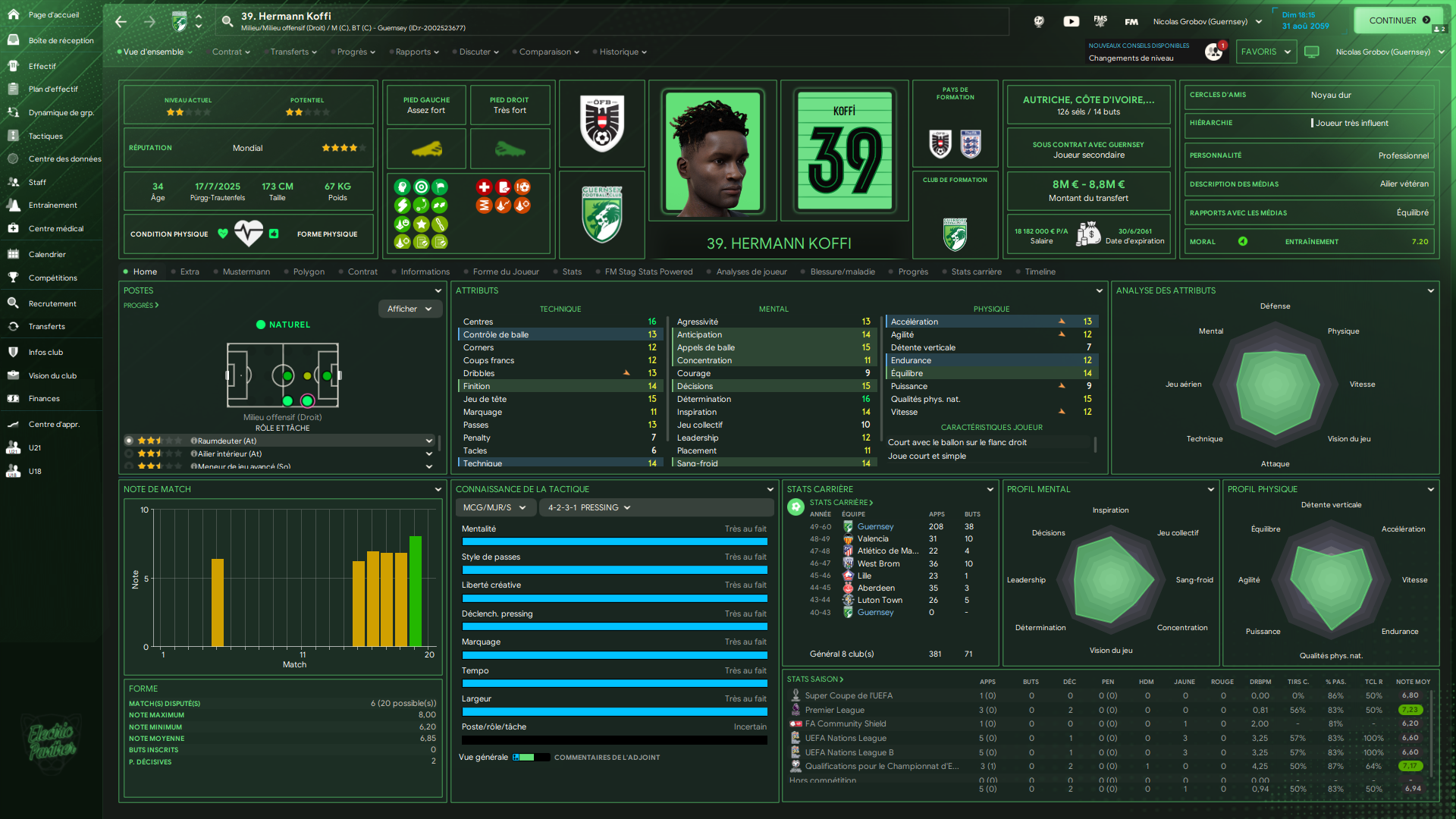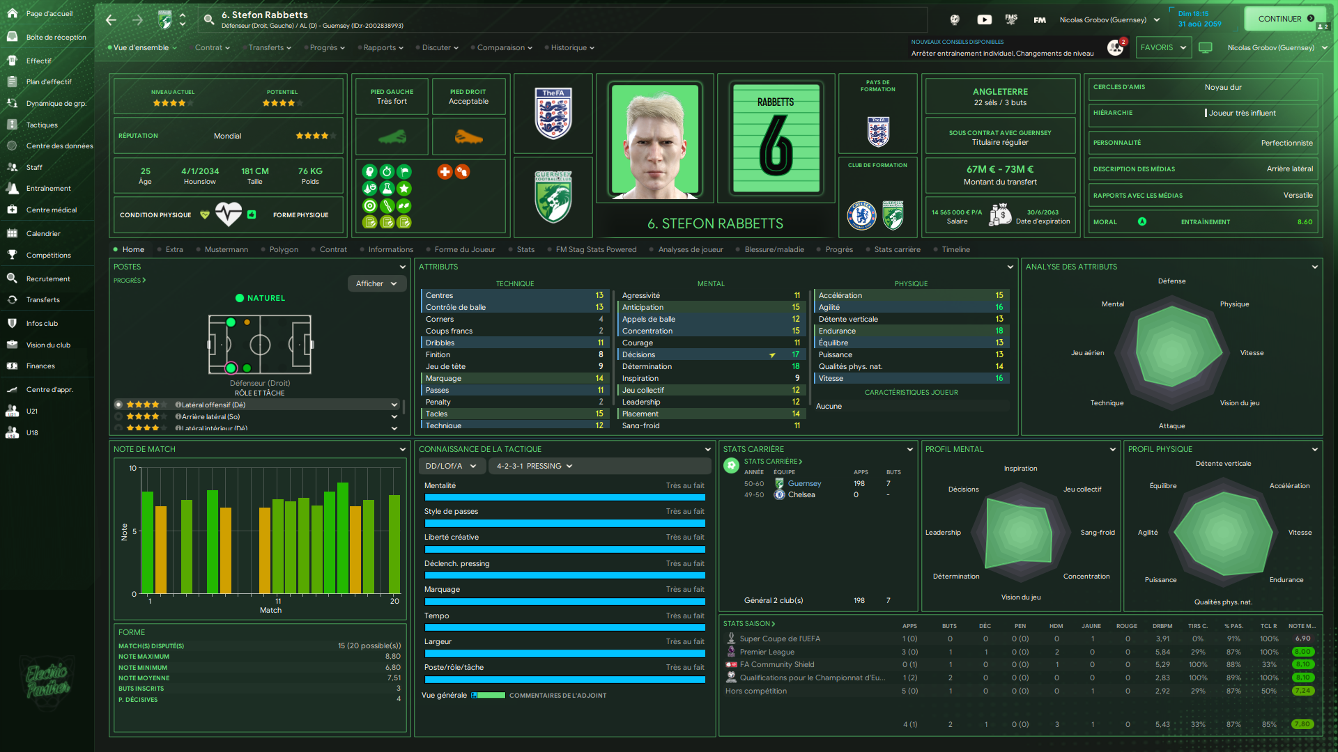↬ Neemo Drewett a été victime d’une élongation d’un muscle adbominal lors de l’entrainement du 11/12/2059 et sera absent pour deux semaines.