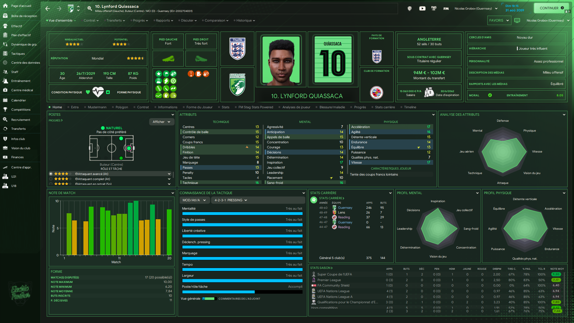 ↬ Lynford Quiassaca a été victime d’une foulure à la cheville lors de l’entrainement du 05/01/2060 et sera absent pour quatre semaines.