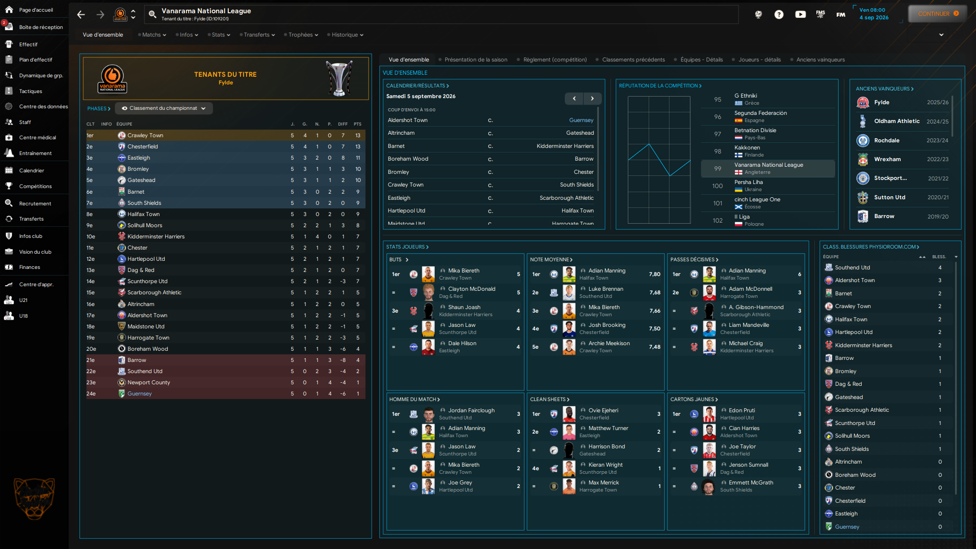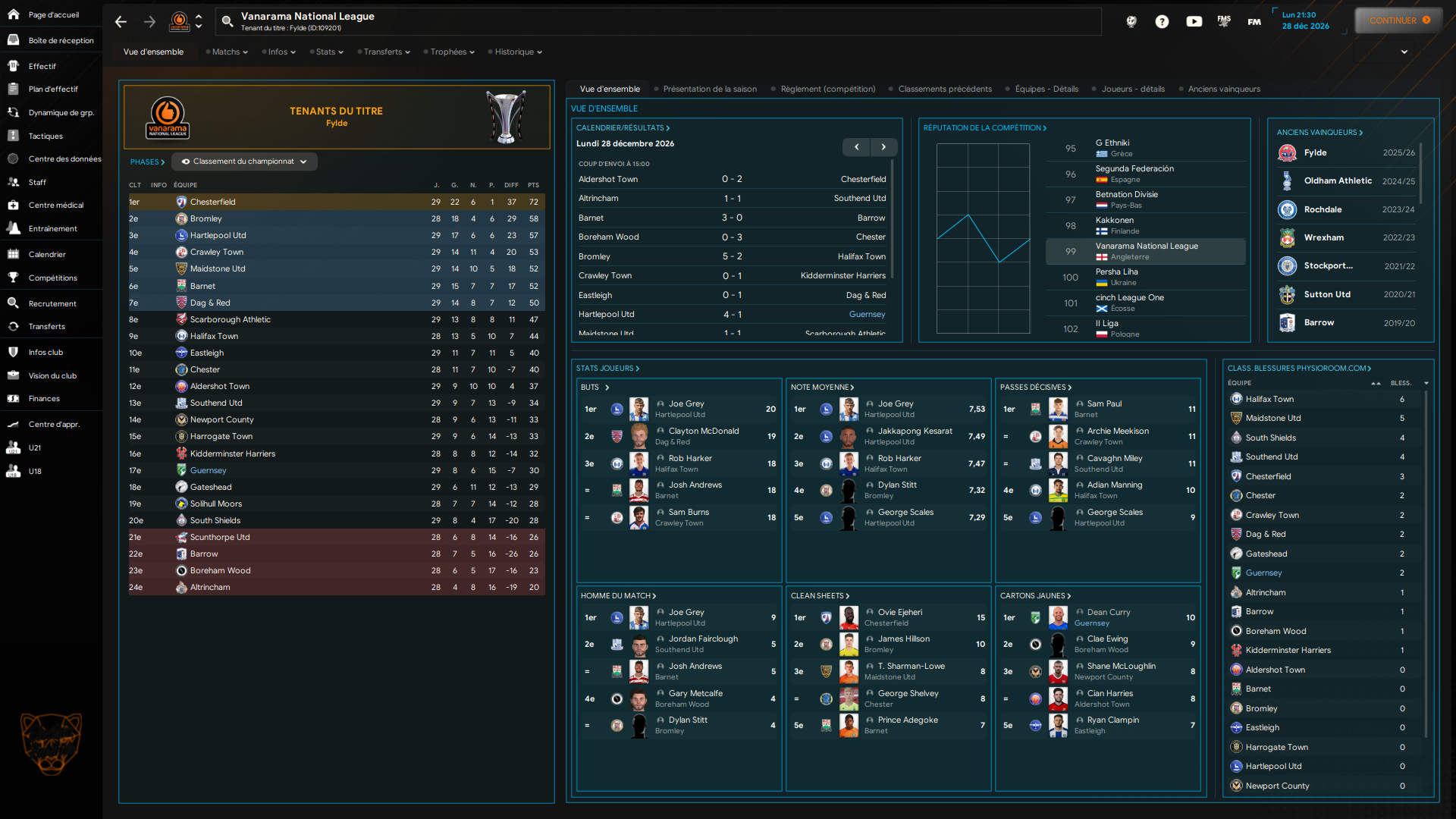 « Un petit regain, malgré l’élimination au troisième tour de Luton Town. L’équipe était bien trop haute pour nous, je suis satisfait de n’avoir seulement perdu que quatre à un. Concernant le FA Trophy, nous passons aisément du côté des huitièmes de finale (ou pas). Nous serons en quart de finale, où nous devrons affronter Chesterfield (qui je rappelle est premier de notre championnat). Parlons championnat, nous faisons quelques éclats mais un seul point faible : on encaisse énormément de buts. »