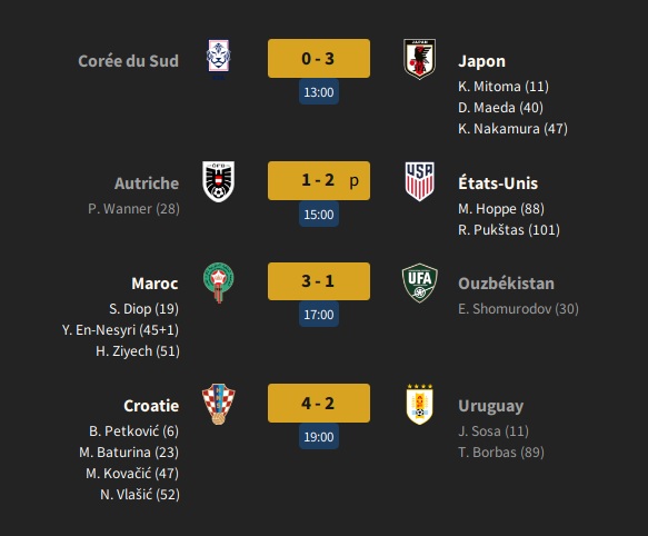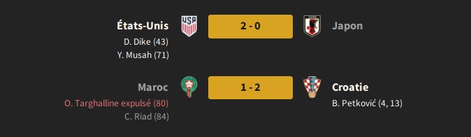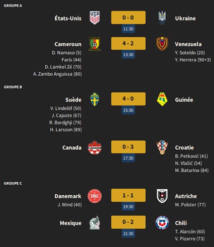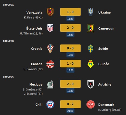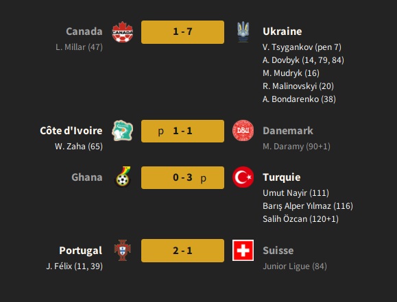 Énorme désillusion pour le Canada, écrasé par l’Ukraine. Première petite surprise avec l’élimination du Danemark face aux Ivoiriens. Il faut toujours se méfier des équipes africaines.
