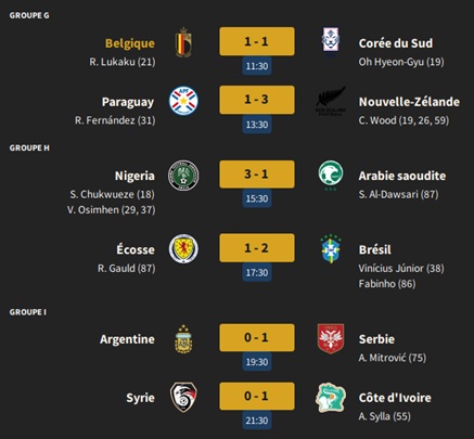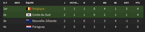Demi-surprise dans l’autre rencontre : les Néo-Zélandais s’imposant face aux Paraguayens, 3-1. Nous sommes donc en tête à égalité avec les Sud-Coréens.
