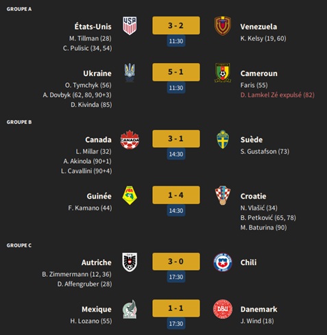 Américains et Canadiens gagnent et passent en 16e, pour le Mexique il faudra attendre le repêchage.