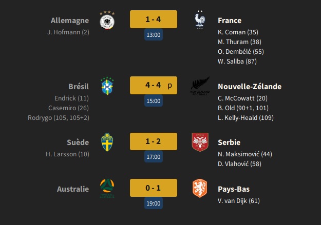Les Pays-Bas mettent fin à la belle série des Serbes, et la France met fin aux rêves océaniens.
