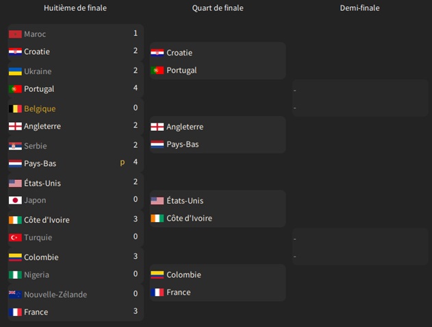 Quatre continents sont toujours présents en quarts. Cette Coupe du Monde n’a pas les allures d’un Euro, c’est bien.