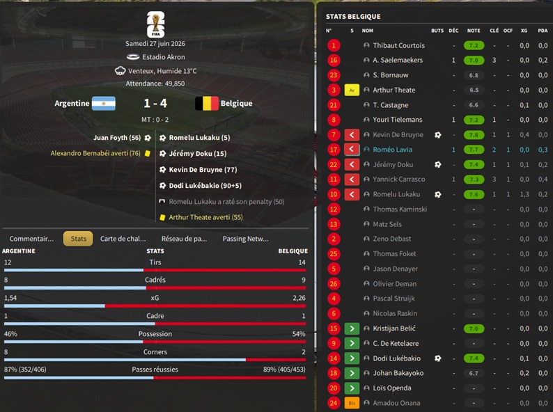 Énooorme victoire belge, avec la manière, face aux champions en titre ! L’Argentine a changé depuis 4 ans, c’est certain, mais elle reste une puissance du Football mondial. La Belgique, sur le déclin depuis quelques années, montre qu’elle a encore des crocs !