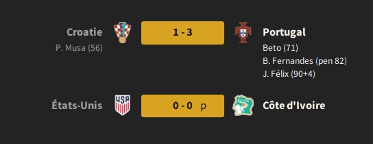 (Il n’y a pas une erreur de capture je vois le Portugal gagnant contre le Congo et Costa Rica de manière impressionnante mais pas la défaite face au Japon
