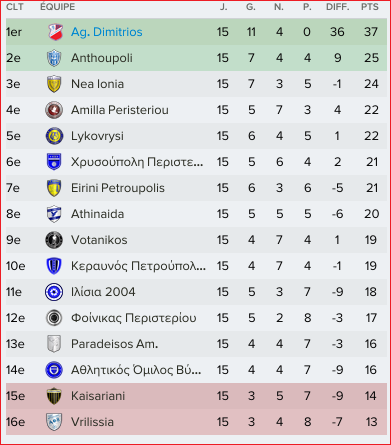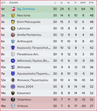 Nous terminons avec trente points d’avance sur nos poursuivants. C’est Nea Ionia qui nous accompagnera à l’échelon supérieur au bénéfice de la différence de but particulière.