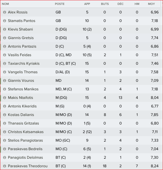En défense centrale, nous avons fini la saison avec 2 DC de métier. Le jeune Pantazis prometteur pour le futur, et Feidas qui a 41 ans a décidé de prendre sa retraite. Il sera donc indispensable de trouver 2 nouveau joueur à ce poste.