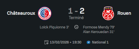 Un joueur de Chateauroux prend son 2 eme jaune. Sur le CF qui suit, on met une double punition.