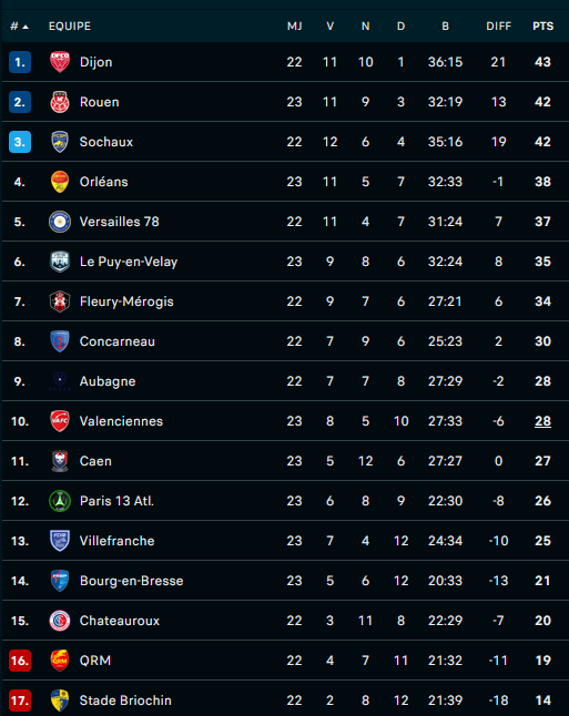 Du 2 eme au 15 eme, il y a une seule équipe (Aubagne) qui a gagnée hier soir.