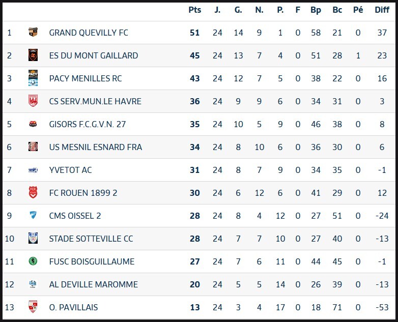 Enfin, sur le bilan sportif avant de mettre le classement, Grand Quevilly et Mont Gaillard montent en N3