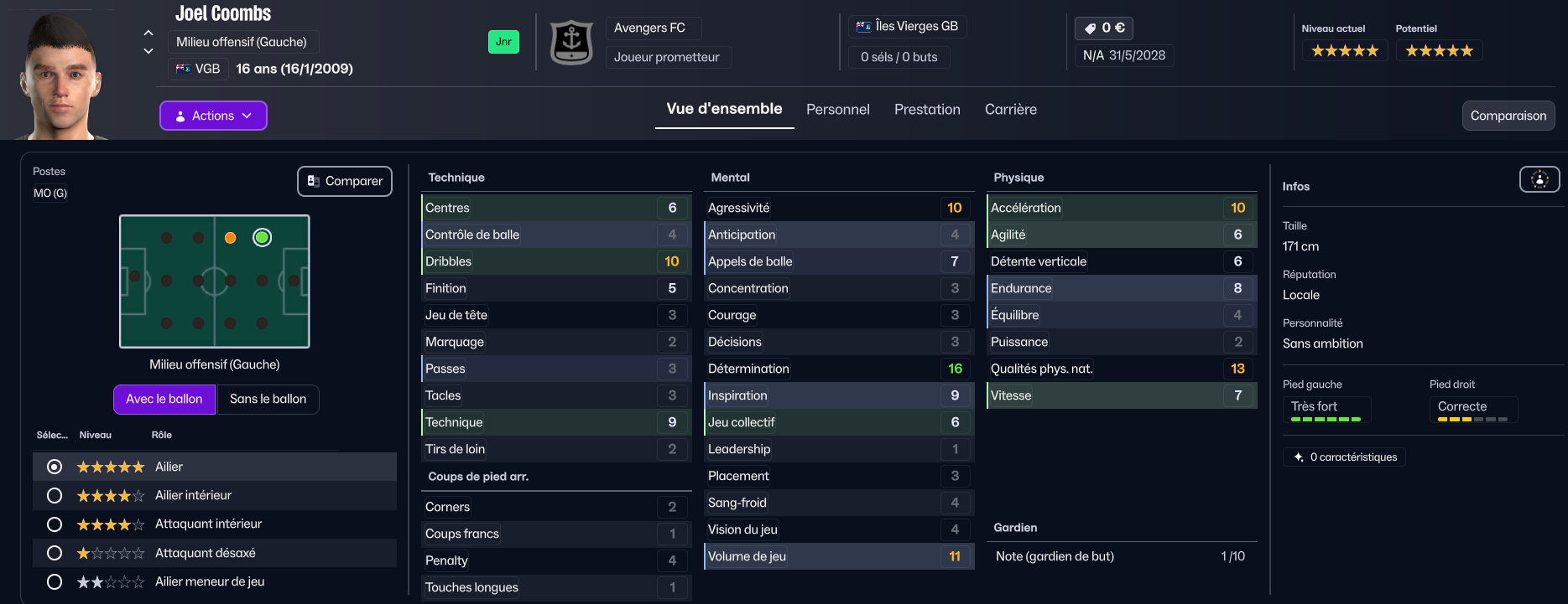 10 en dribble, autant dire que c’est le Neymar de l’île. De l’île, pas de Lille, @Groot … Personnalité: sans ambition. ça promet… ![]()