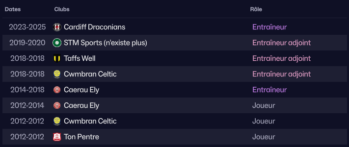 Câest auprĂšs de lui quâil va parfaire sa formation en intĂ©grant son staff chez les Cardiff Draconians dĂ©but 2023.