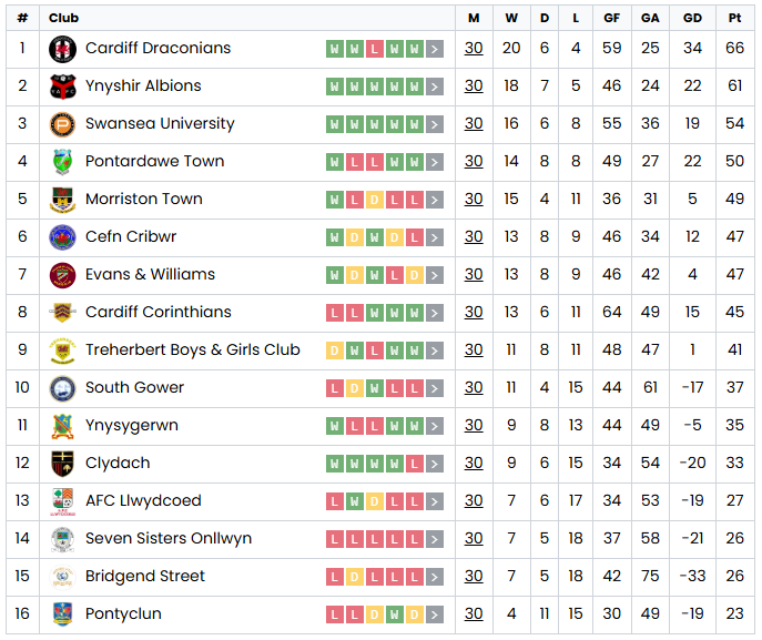 Mais le club ne remplit pas les critĂšres pour monter en Welsh Premier League et reste donc dans cette 2Ăšme division Galloise.