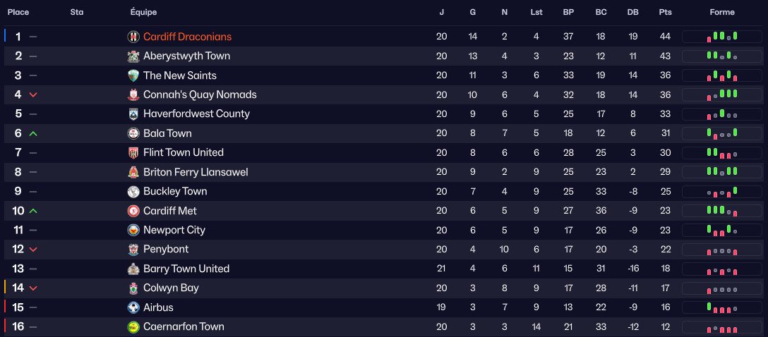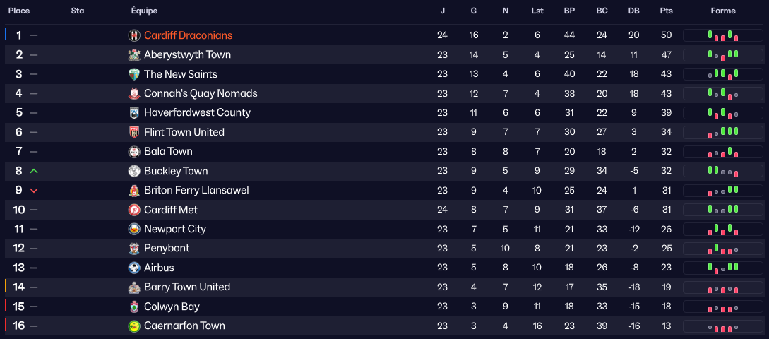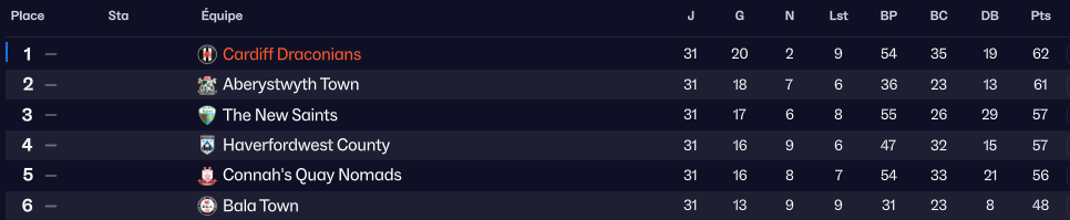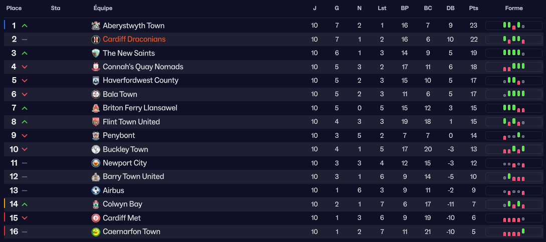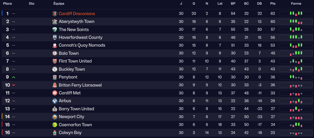 En regardant ce classement, il se dit quâon pourrait croire Ă une erreur entre les places des Draconians et Caernarfon Town, second lâan passĂ©.