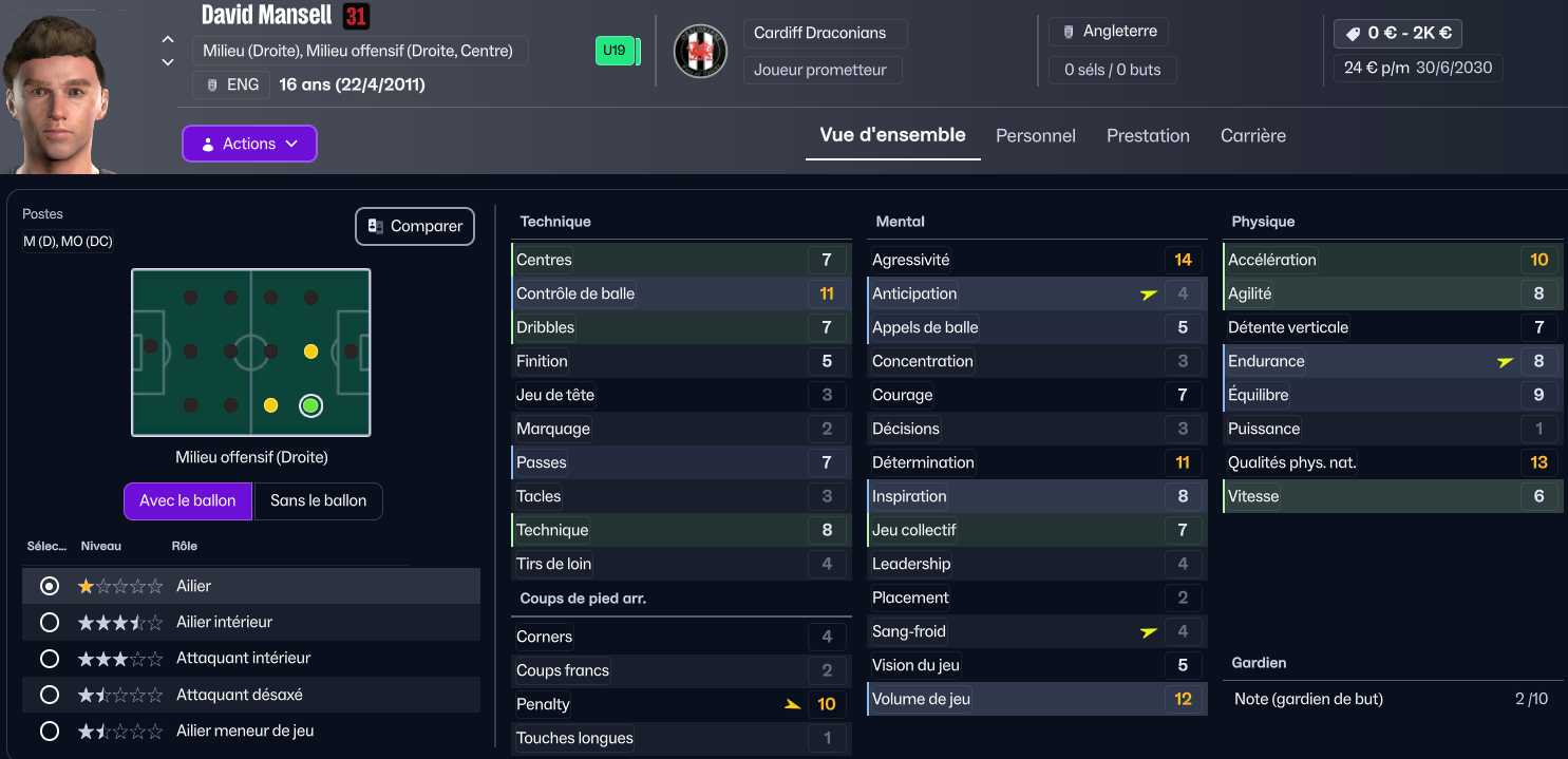 HabituĂ© Ă ĂȘtre sur le banc de lâĂ©quipe premiĂšre, il entrait rĂ©guliĂšrement en jeu en fin de rencontre et la pression glissait sur lui.