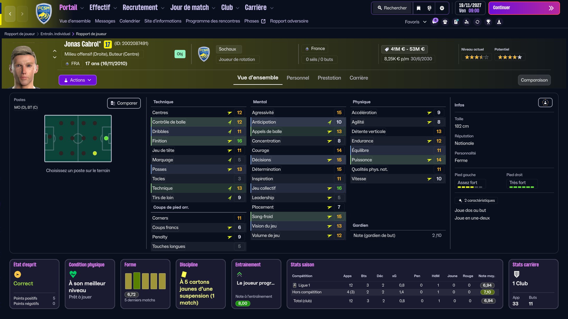 tu devrais ptête essayer le 4 5 1 avec 2 latéraux qui montent pas trop, un gros milieu à 3 bien dense, 2 ailiers intérieurs qui gravitent autour de ton Cabrol en pivot qui travaille son jeu de tête à mort à l’entrainement