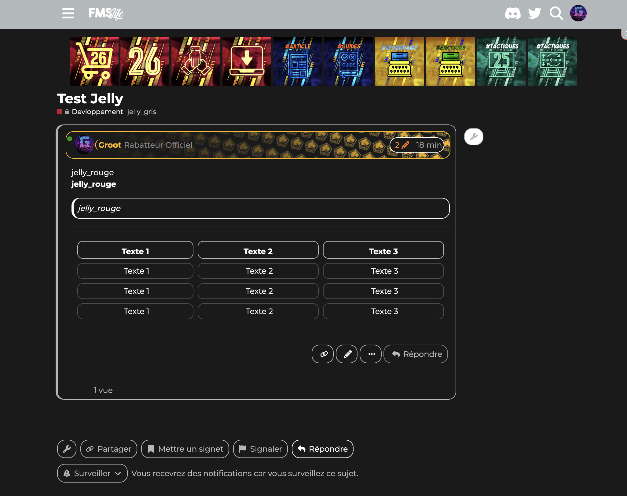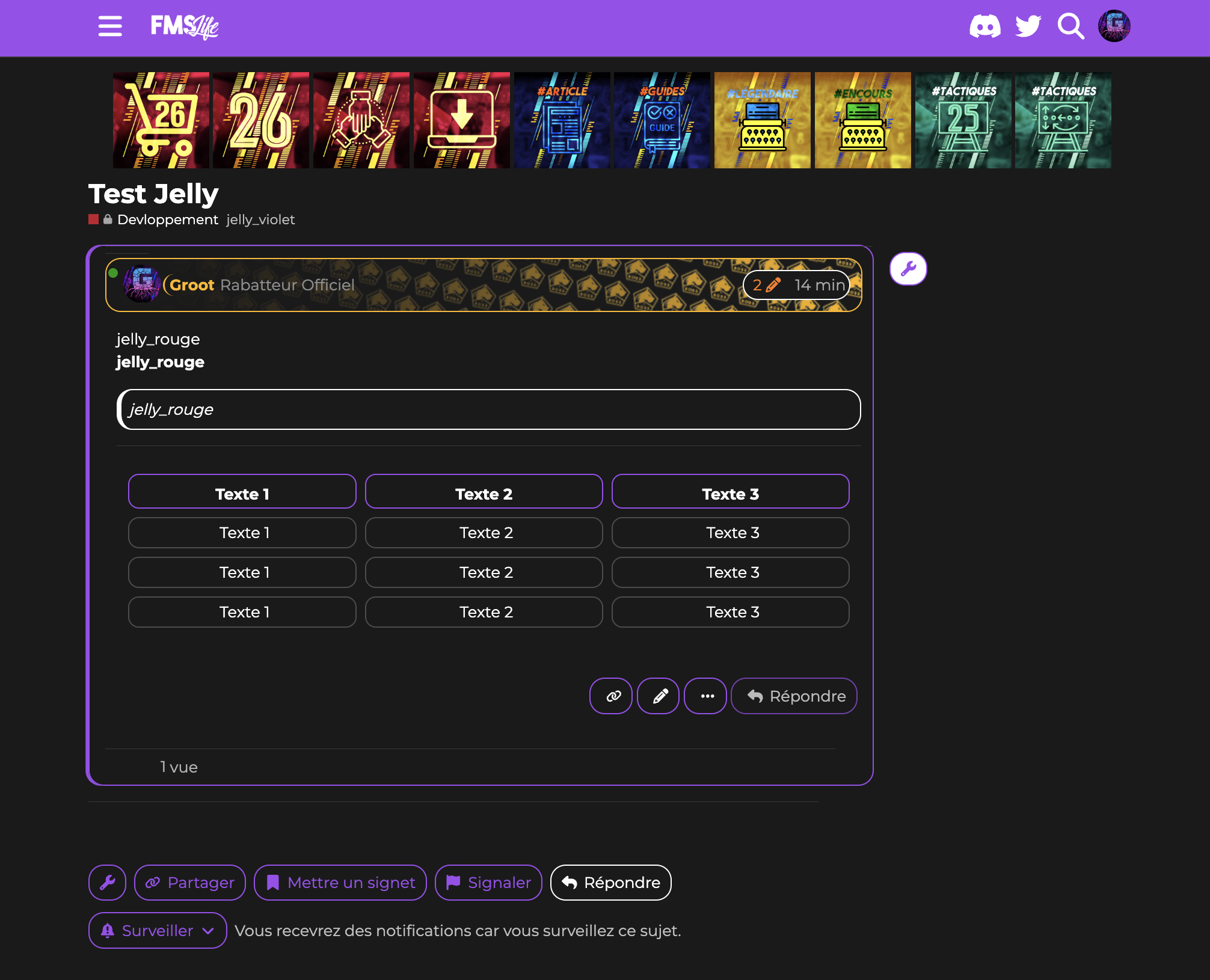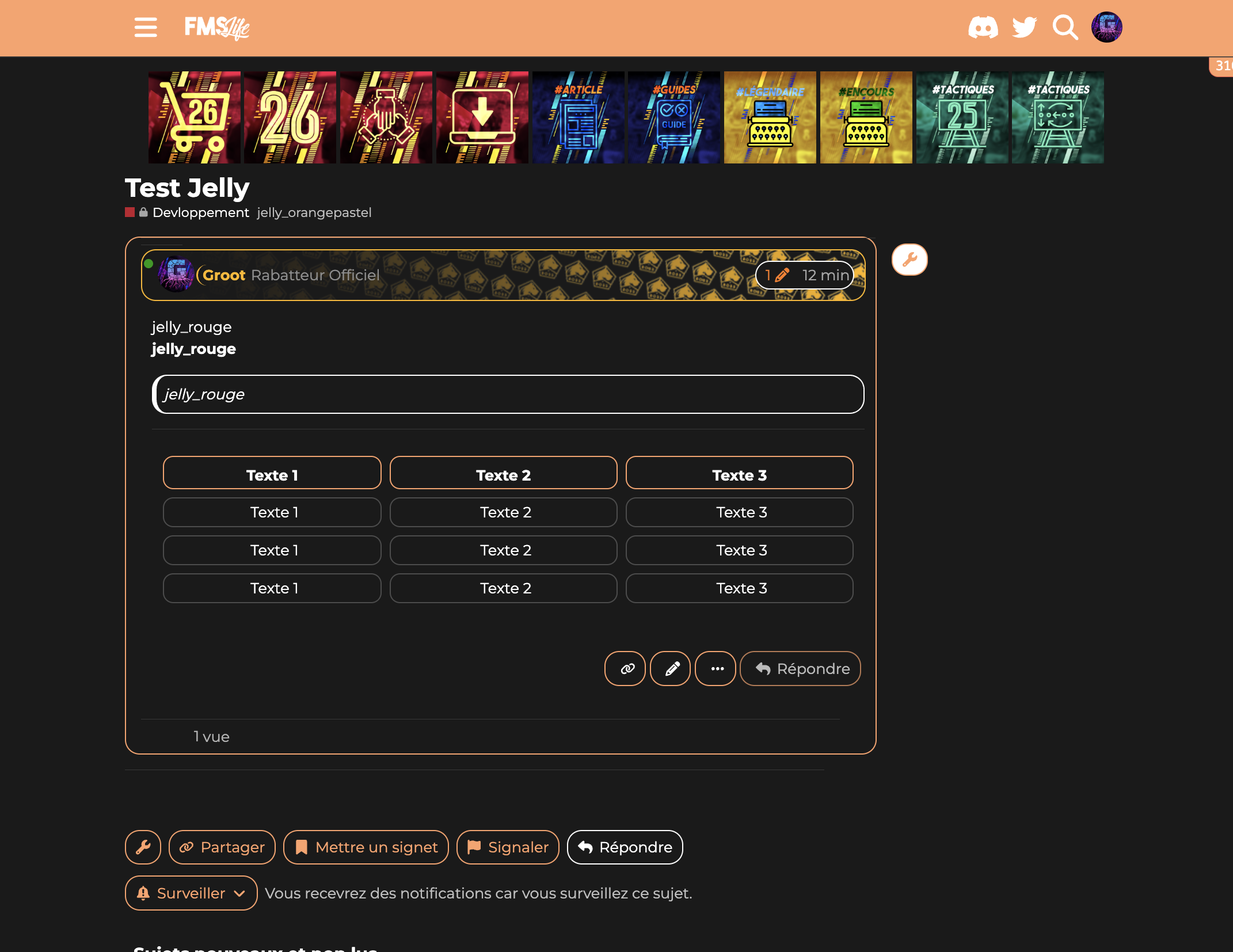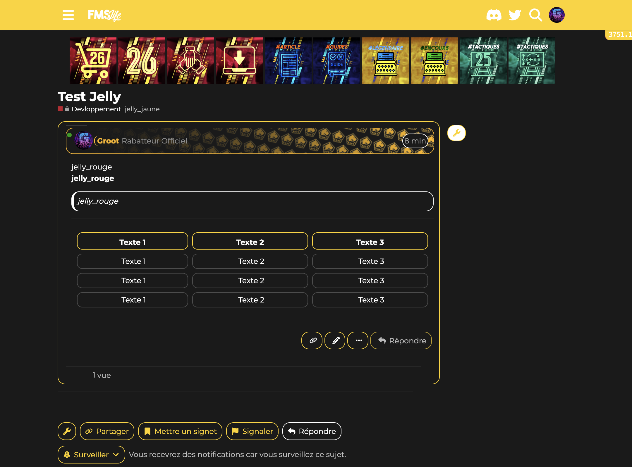 Comme vous le savez pour les sujets vous pouvez ajouter des tags. J’ai inauguré un nouveau groupe de tags les jelly tags ![]()
