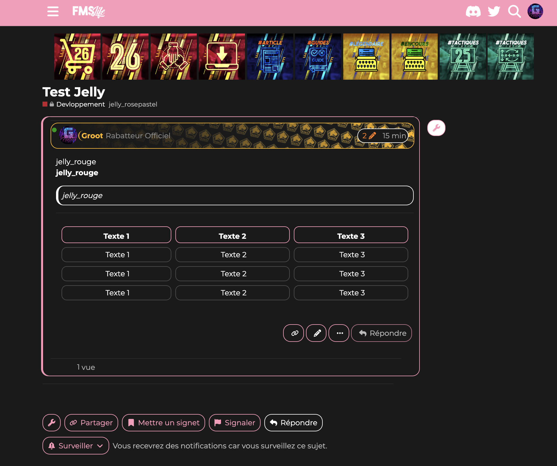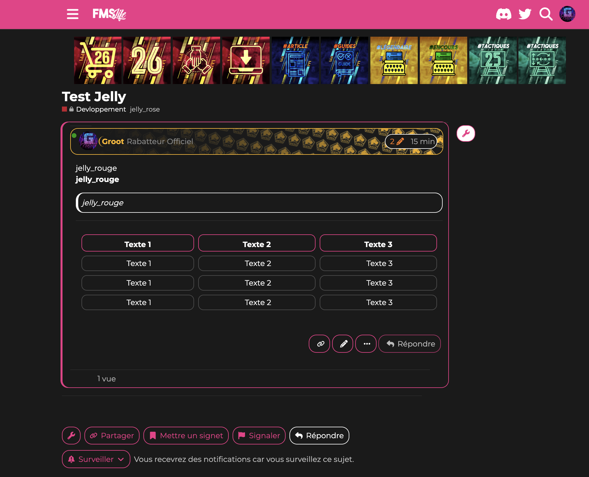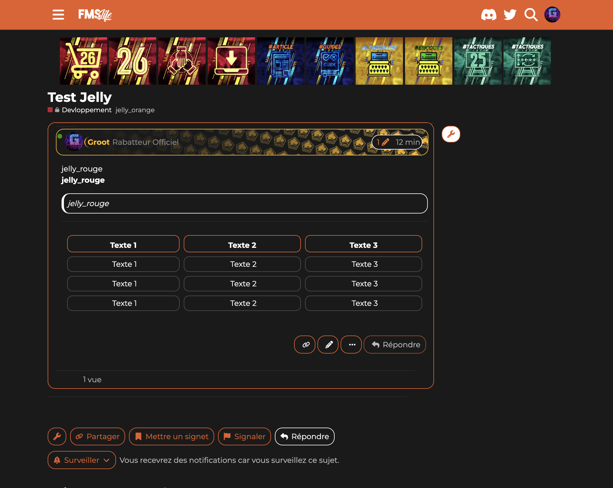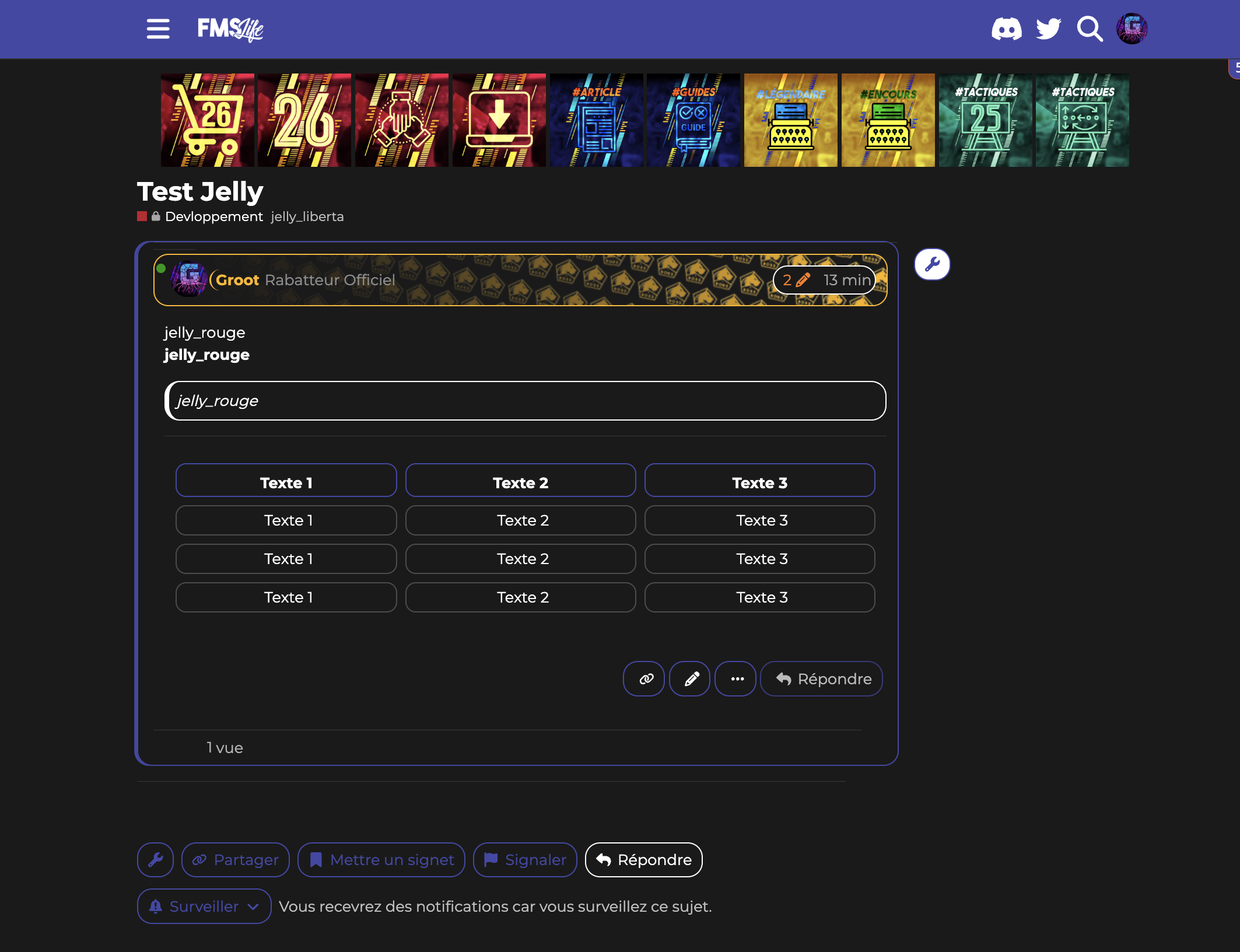 Comme vous le savez pour les sujets vous pouvez ajouter des tags. J’ai inauguré un nouveau groupe de tags les jelly tags ![]()
