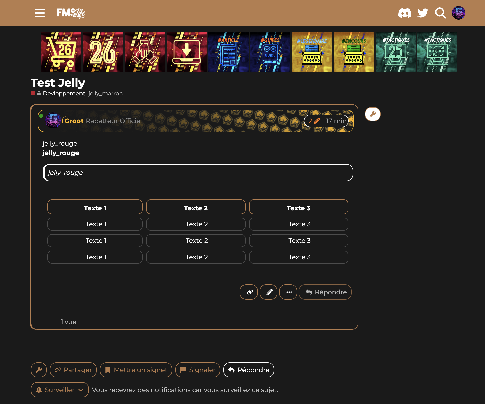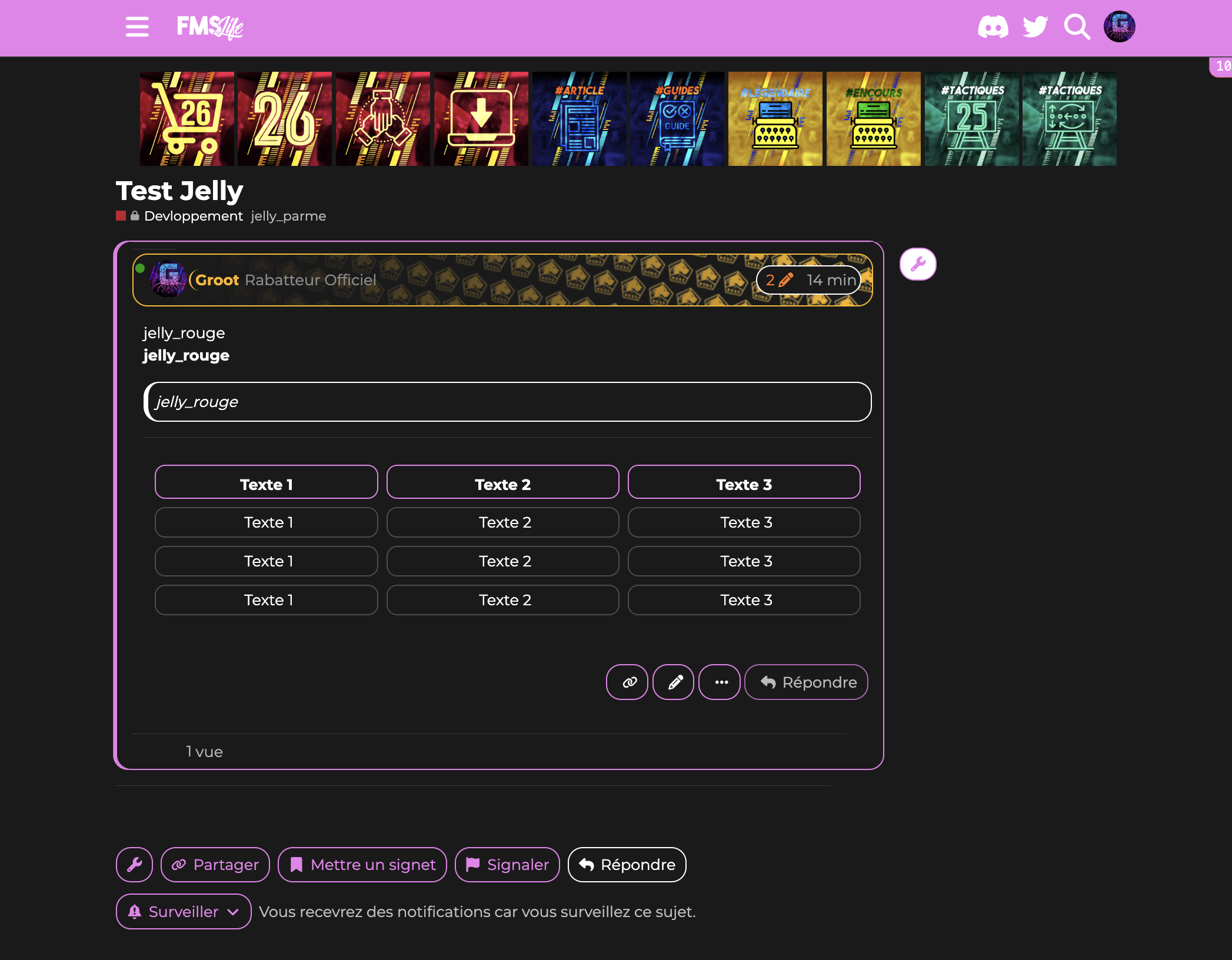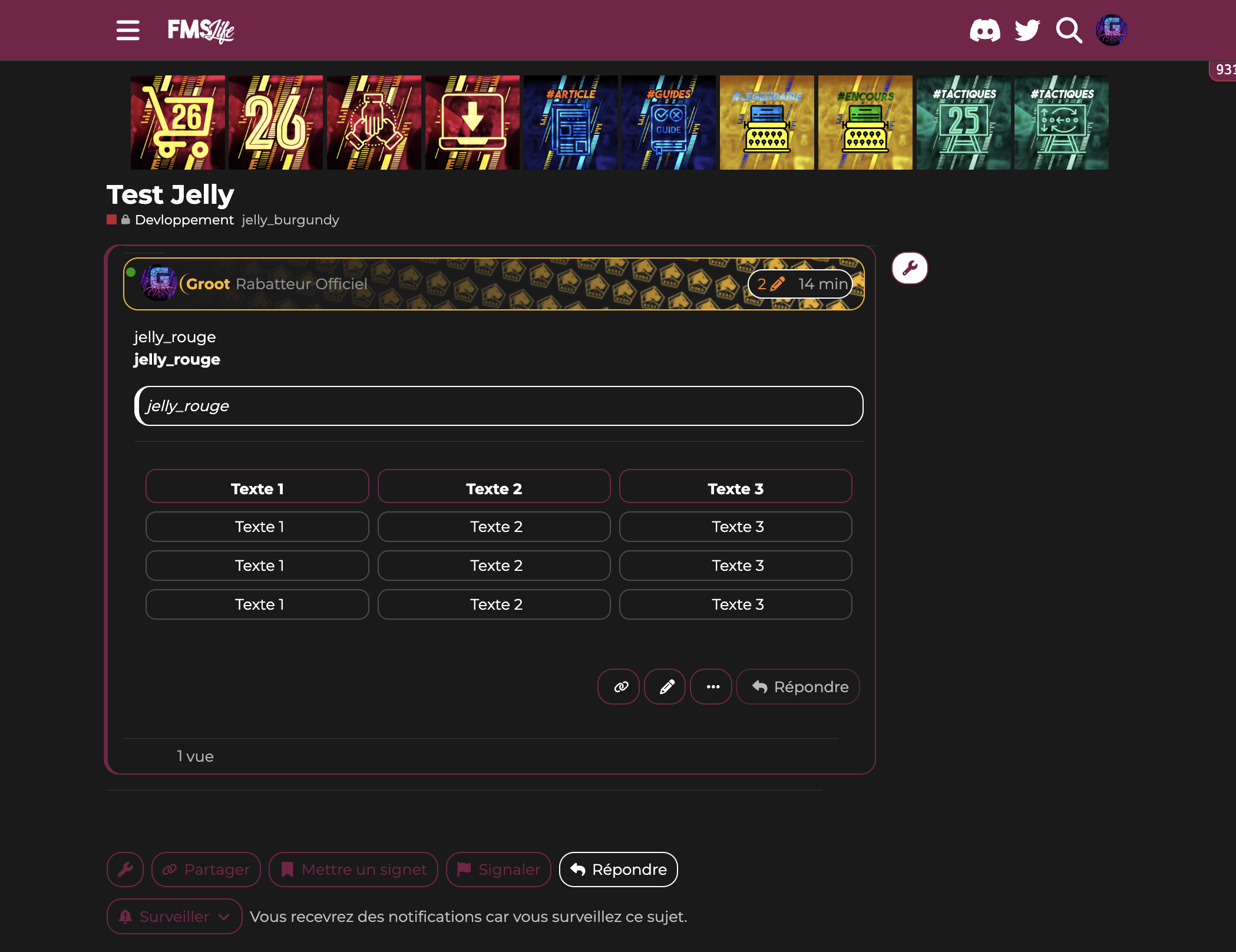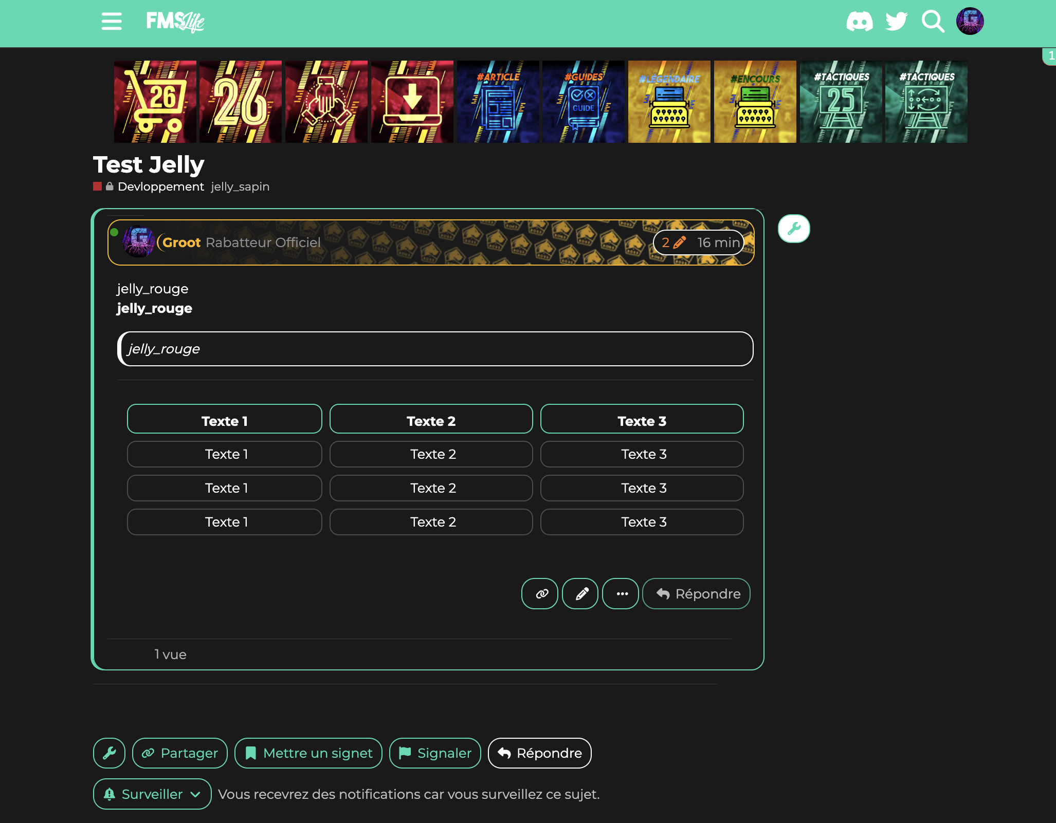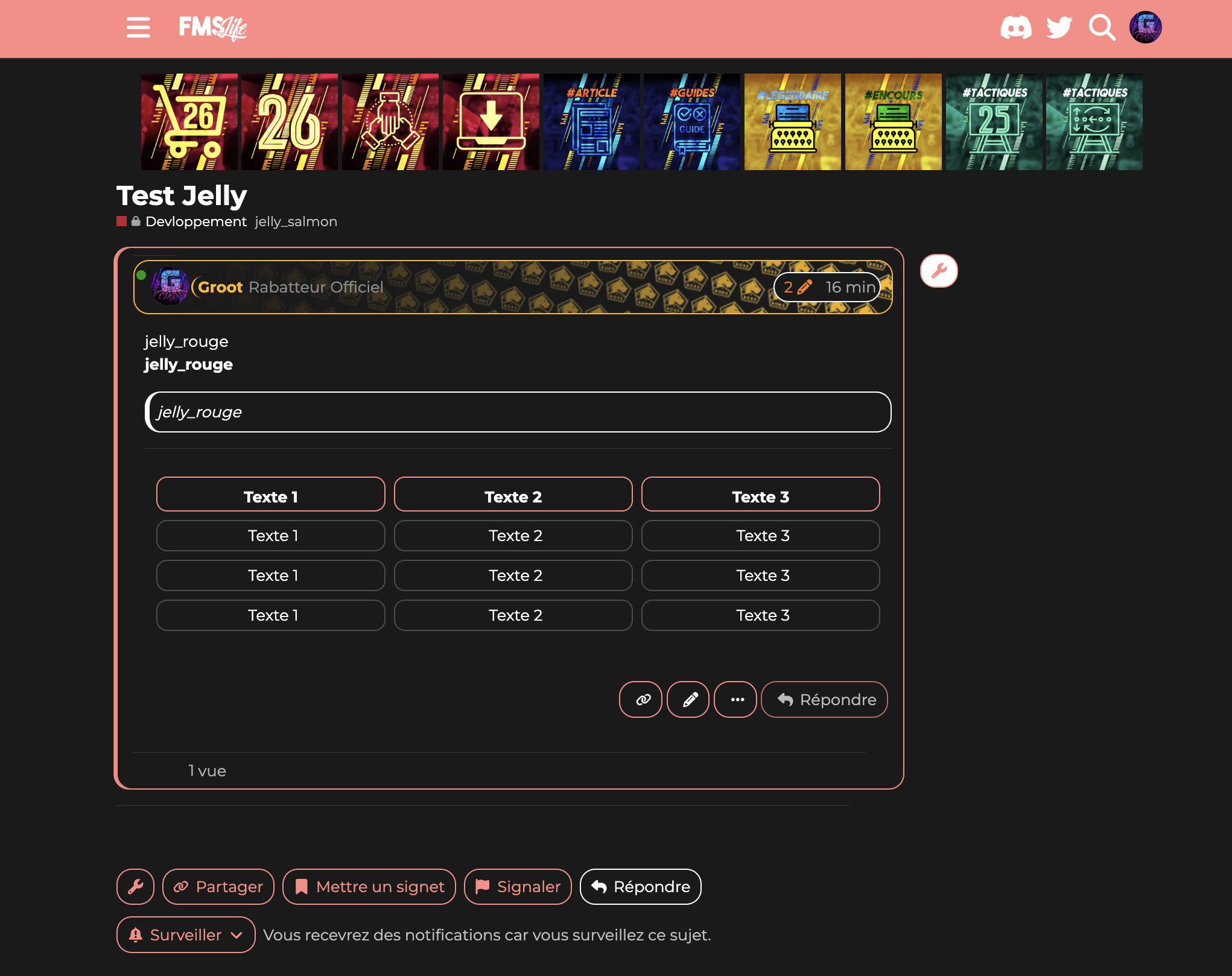 Comme vous le savez pour les sujets vous pouvez ajouter des tags. J’ai inauguré un nouveau groupe de tags les jelly tags ![]()